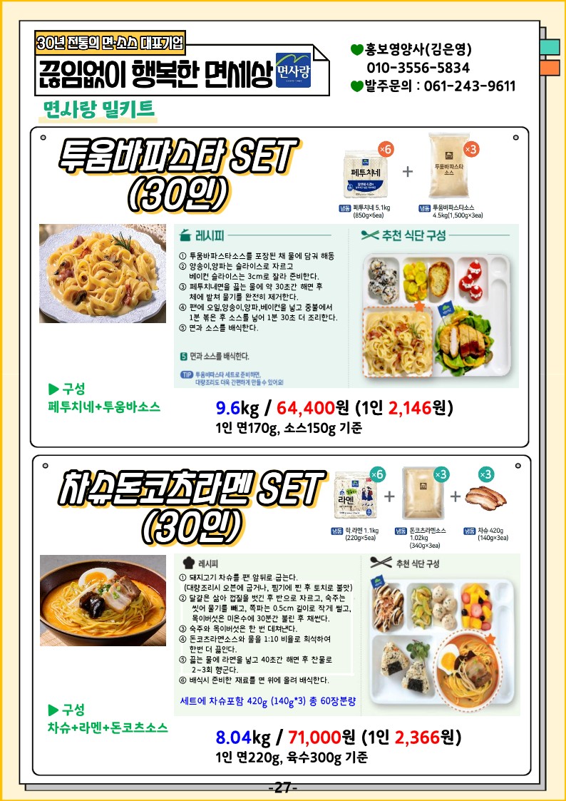 면사랑 단가표와 레시피북을 올려드리오니 맛있는 식단에 참고부탁드립니다!!