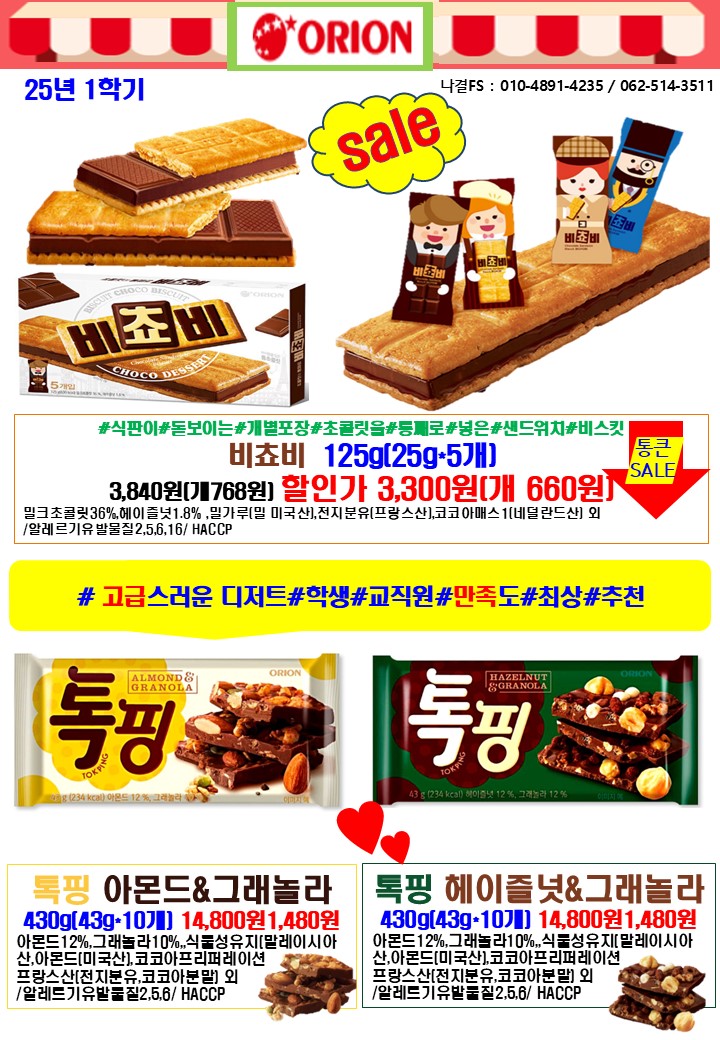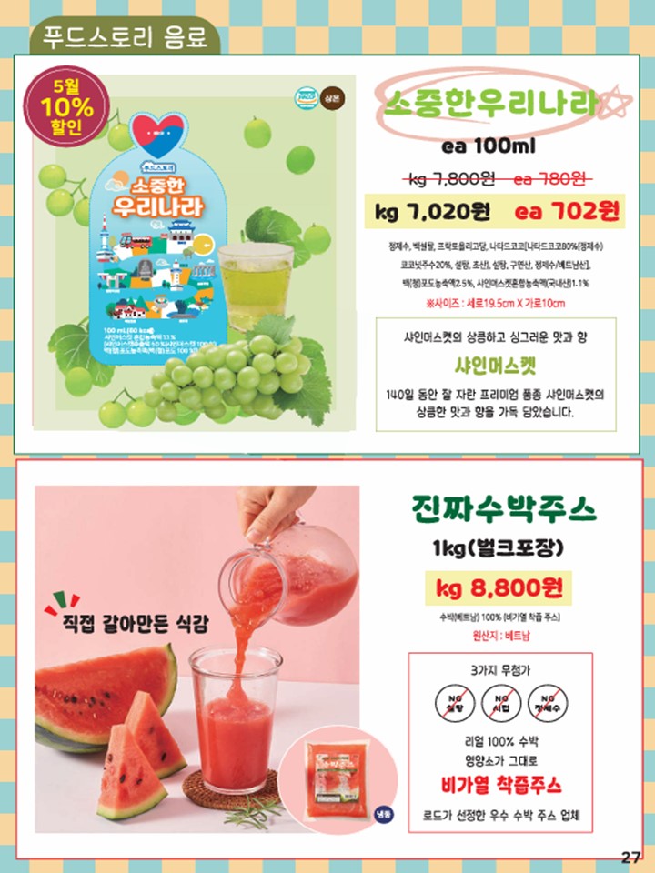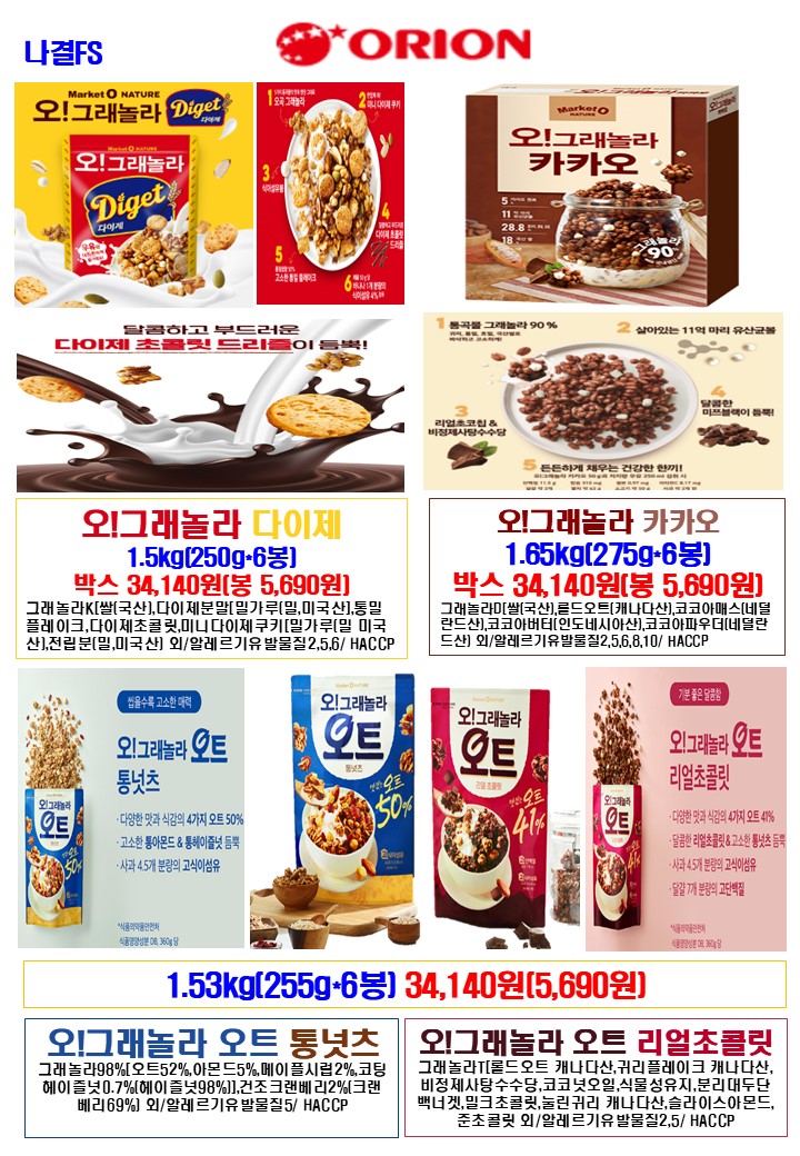 나결fs 25년 5월 푸드스토리,싱싱플러스,착한애,제이브라운,오리온,학교간닭,천일식품,루토사,목우촌,한국전통식품,가보팜스,명인쌀조청,토리식품,우리밀농협,다온매실,명랑핫도그,하이포크(가족사랑) 행사지(리플릿) 안내드립니다.