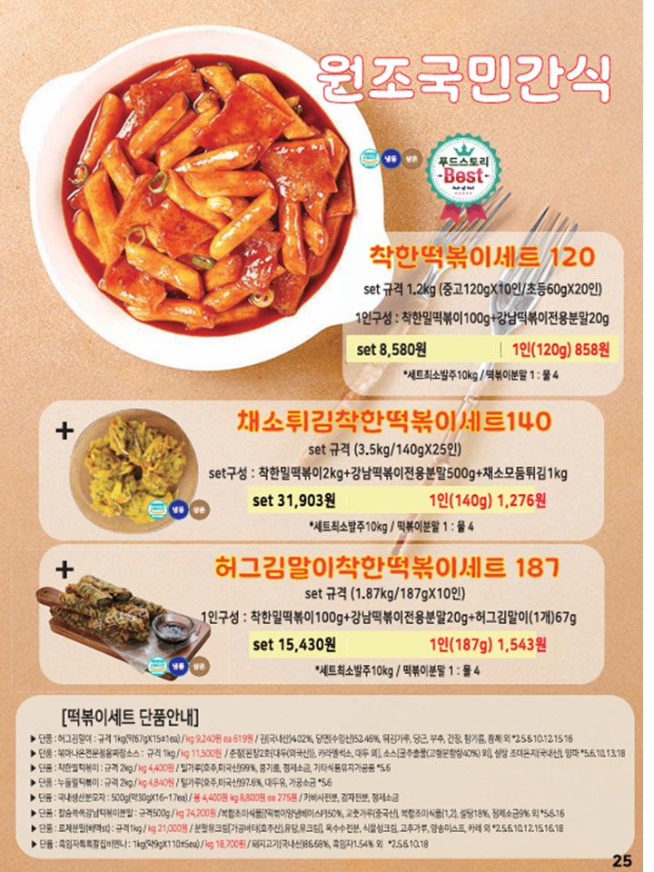 나결fs 한국전통떡 5월 단가 안내드립니다.