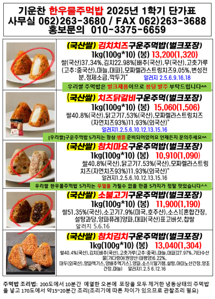 ♣♣♣기운찬 한우물주먹밥 ≪6월 단가표≫입니다♣♣♣