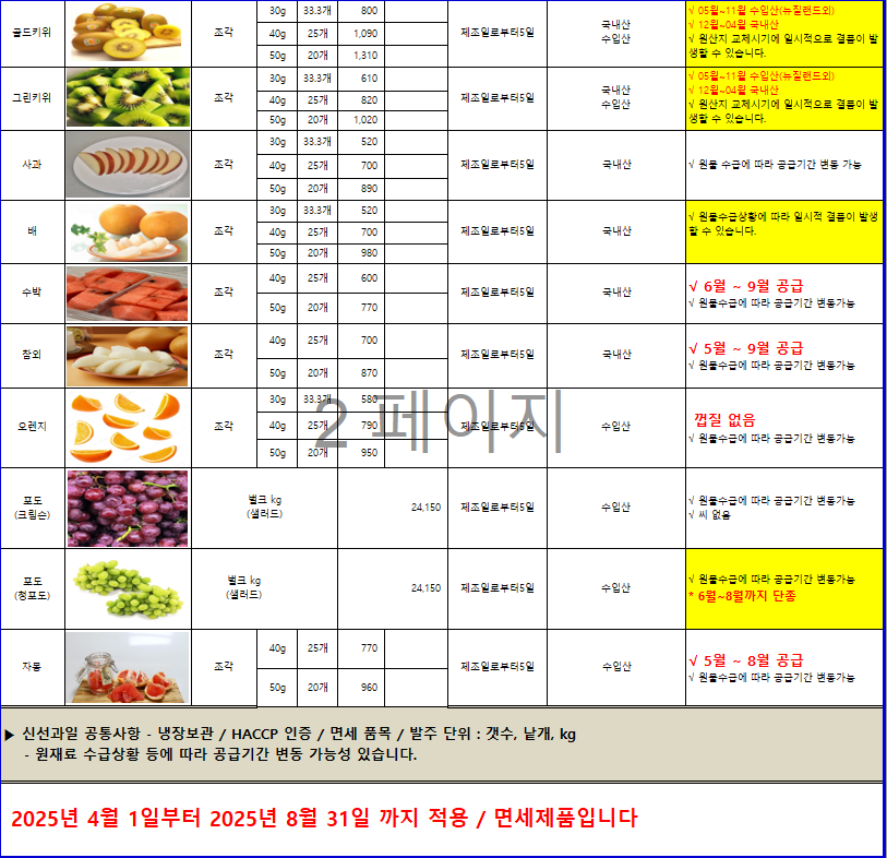 ◈◈한맥푸드◈◈ 올굿(이루다)/조각과일,냉동과일/컵과일 6월 단가표 ◈◈◈◈