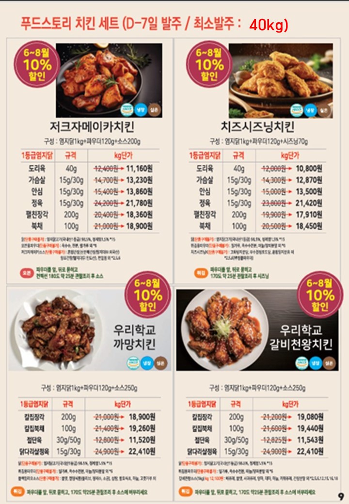 푸드스토리 "닭(정육) 최소발주 40kg부터 가능합니다!!!"