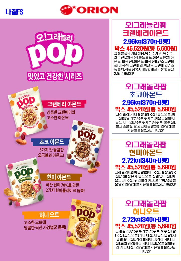 나결fs 25년 6월 푸드스토리,싱싱플러스,착한애,제이브라운,오리온,학교간닭,천일식품,루토사,목우촌,한국전통식품,가보팜스,명인쌀조청,토리식품,우리밀농협,다온매실,명랑핫도그,하이포크(가족사랑) 행사지(리플릿) 안내드립니다.