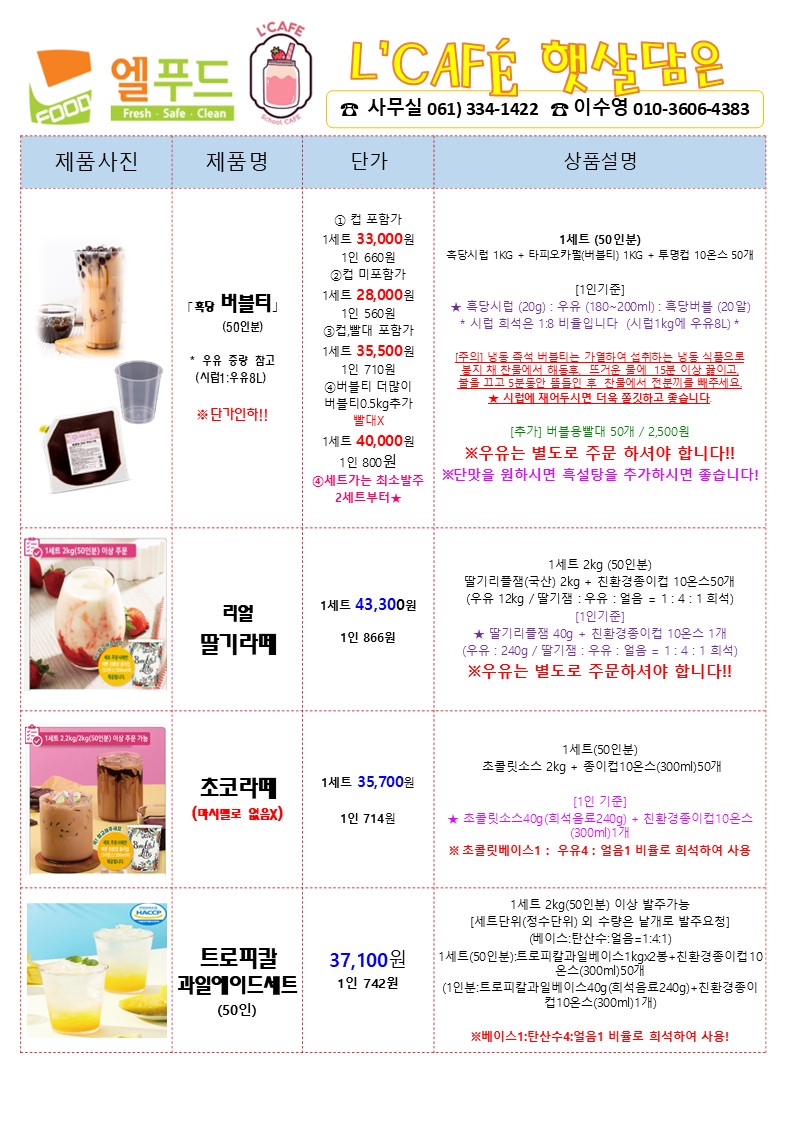 ★★★★ 엘푸드 브랜드 ※ 06월 총학교 단가표※ ★★★★
