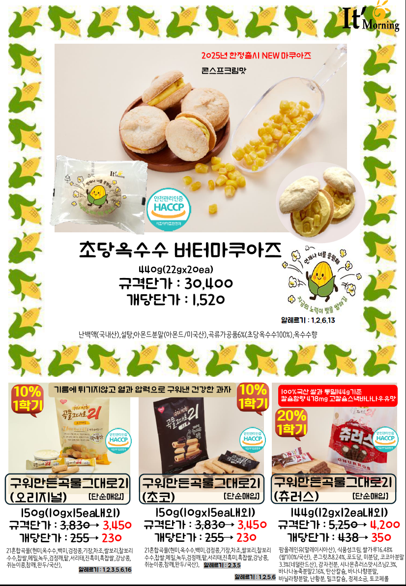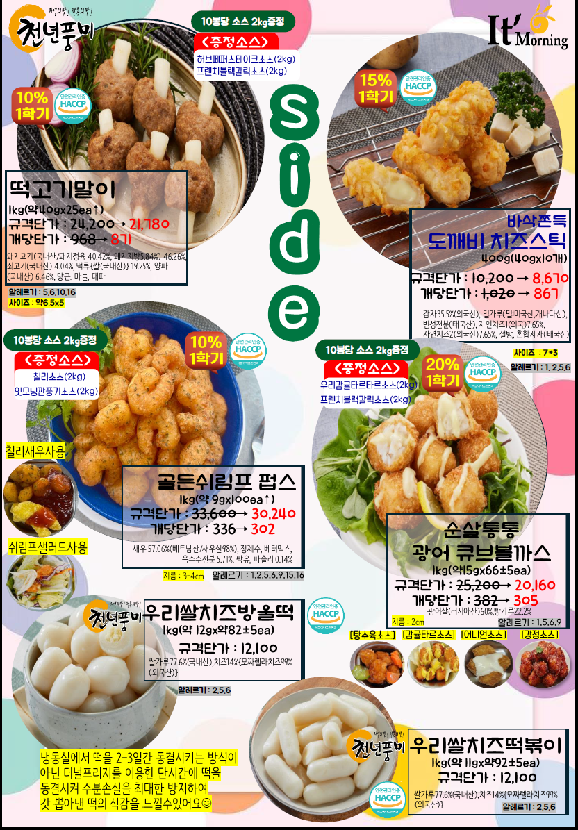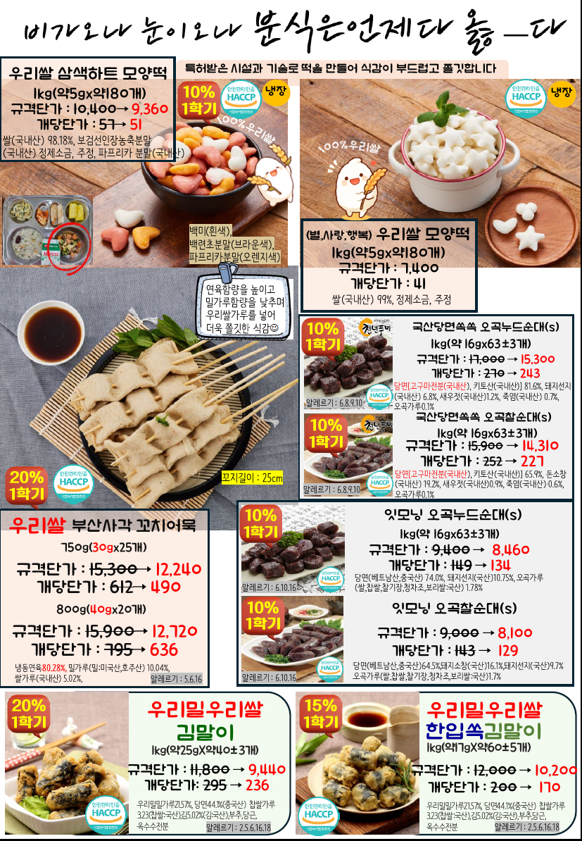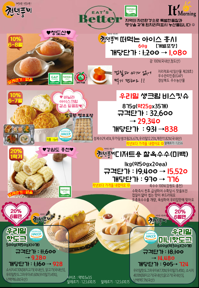 ◈≪≪도래샘푸드≫≫❤️▶[천년풍미/잇모닝]◀❤️6월 전체단가표(호국보훈(산딸기쏙초코우피파이,허니건빵),미숫가루두유,수비드연어,크럼블크런치킨,전통섭산적,장어데리야끼스테이크외