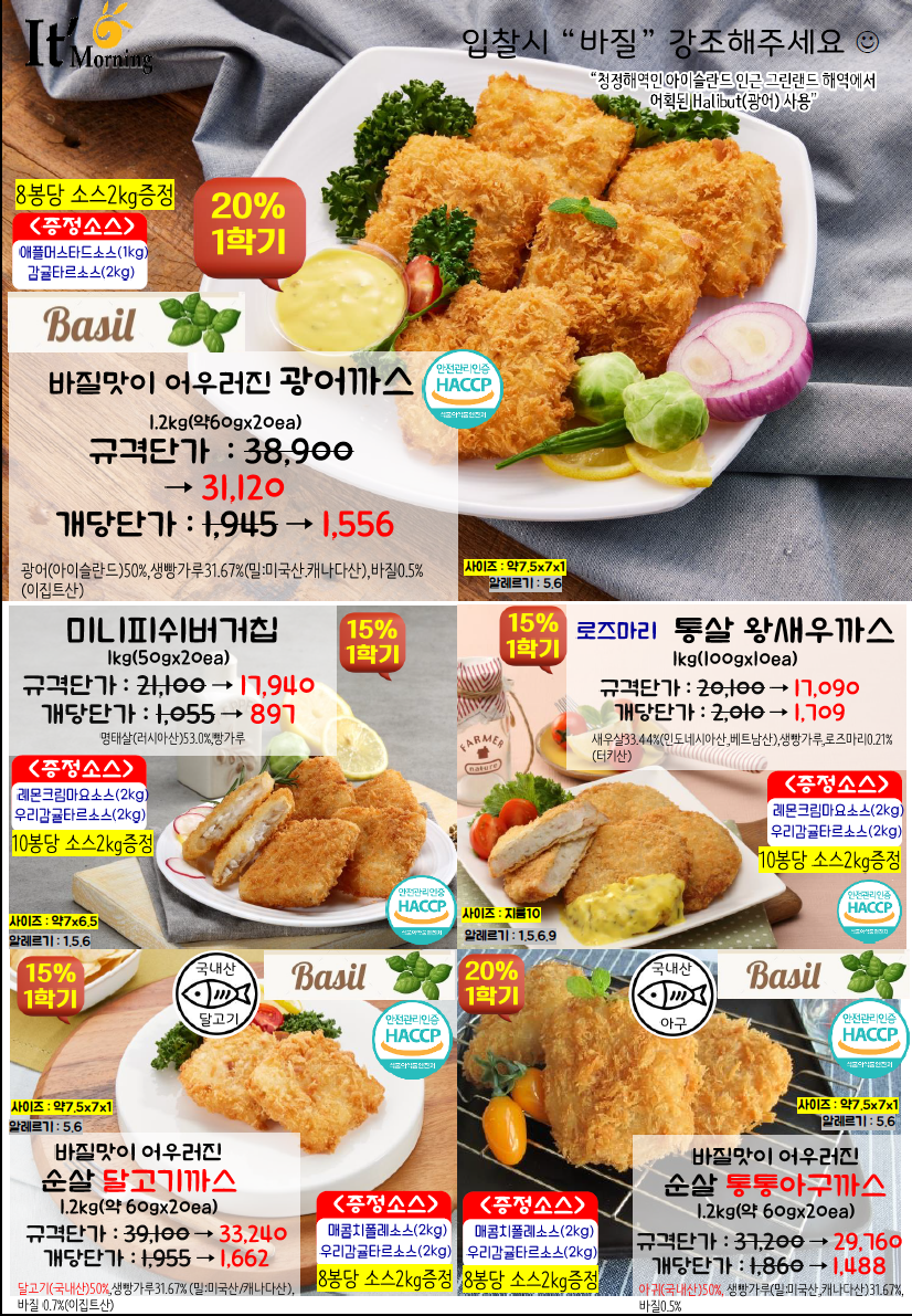 ○ 바질맛이어우러진 순살가지미까스: 20%+10%(30%행사)