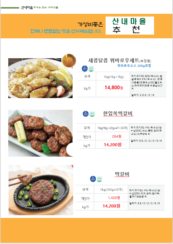 §§송곡푸드§§ 산내마을 7월 단가표입니다 §§§§