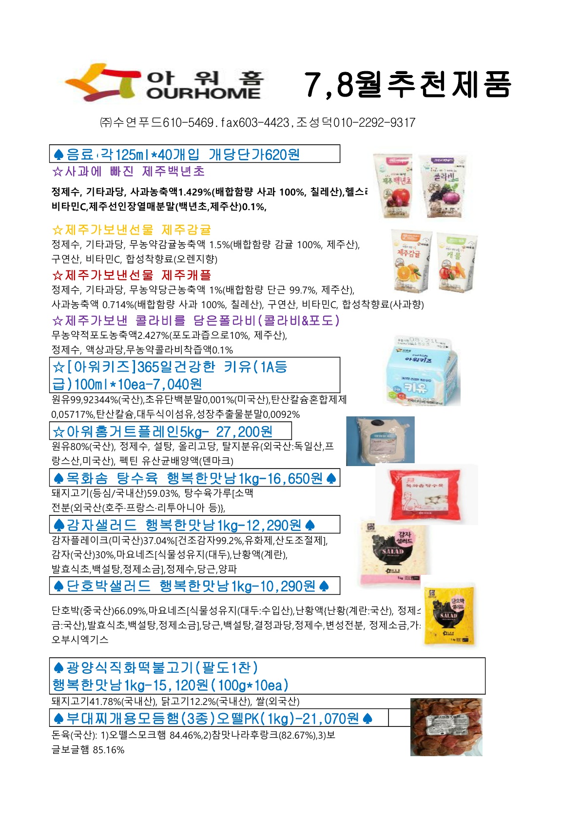 ▷▶수연푸드▶아워홈25년7,8월단가(수제등심돈까스,음료,후식,베이커리,소스,드레싱,면류,왕새우튀김등)입니다.…