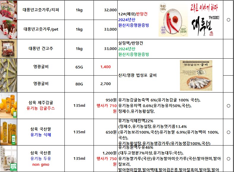 ***SFC푸드맘 참들애 7월 단가표입니다(가격변동 없슴)***