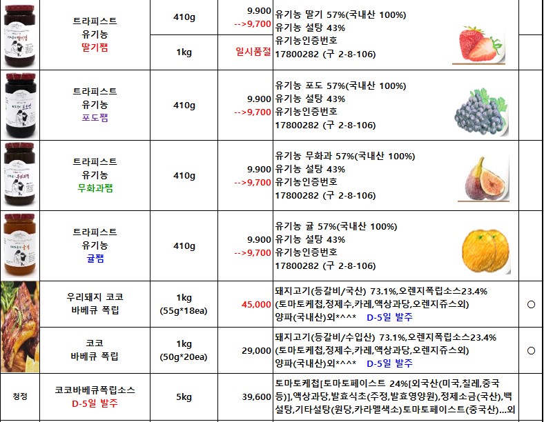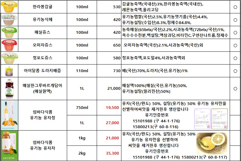 ***SFC푸드맘 청정(음료,유기농 쨈류.매실원액.유자청.설탕류외) 1학기 단가표입니다.***