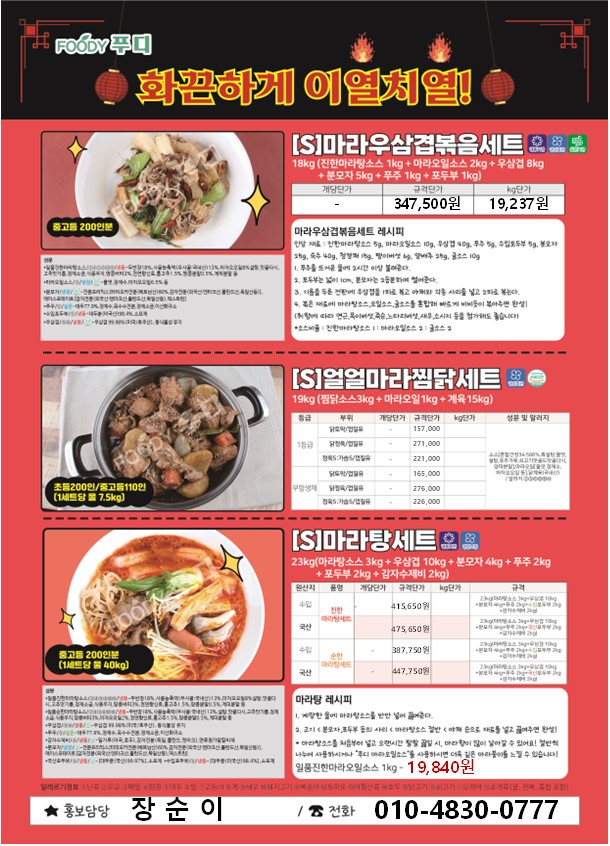 ***SFC푸드맘 푸디 7월 단가표입니다.(추천단가포함)***