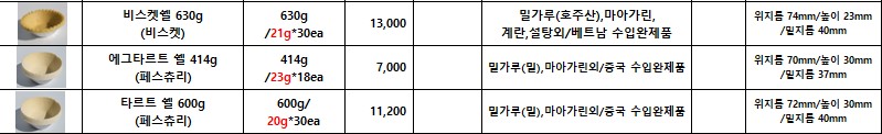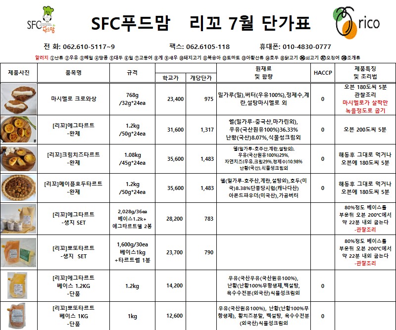 ***SFC푸드맘 리꼬(마시멜로크로와상,타르트,쉘/도우) 7월 단가표***