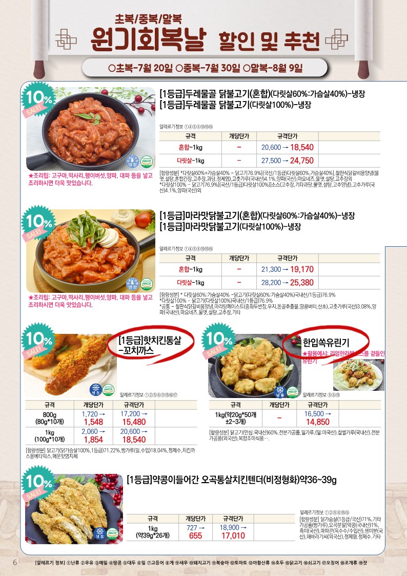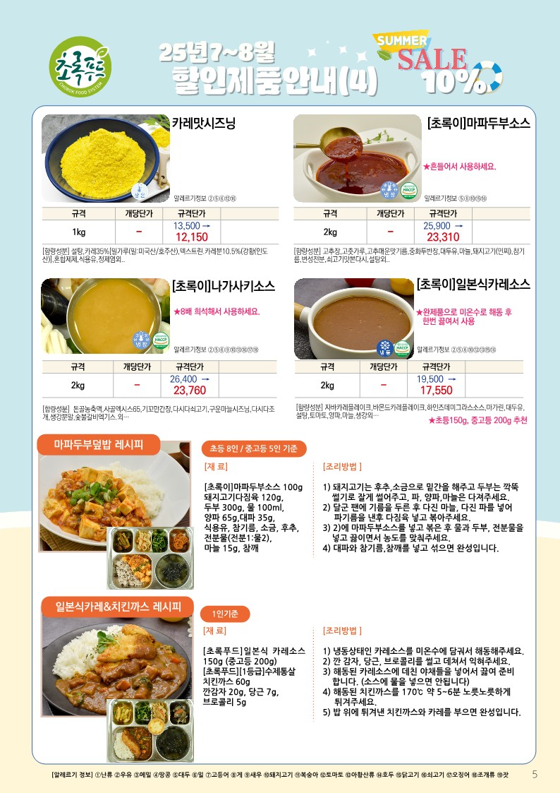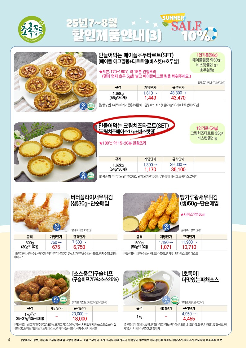 ✿✿[동원에프엔에프]초록푸드&급식대장 7월 단가표✿✿