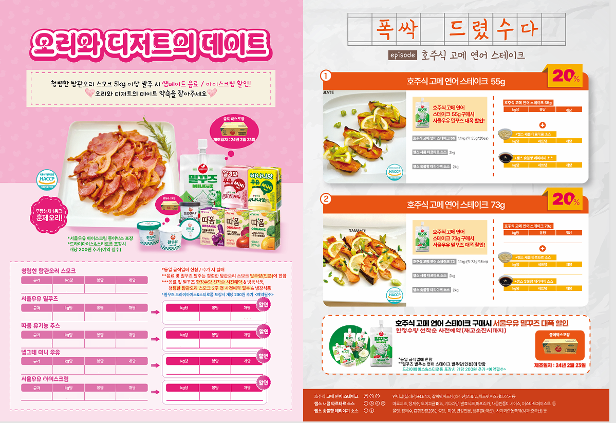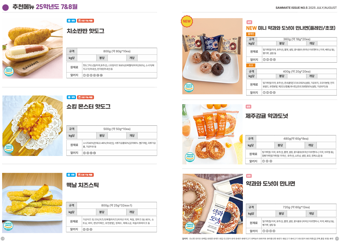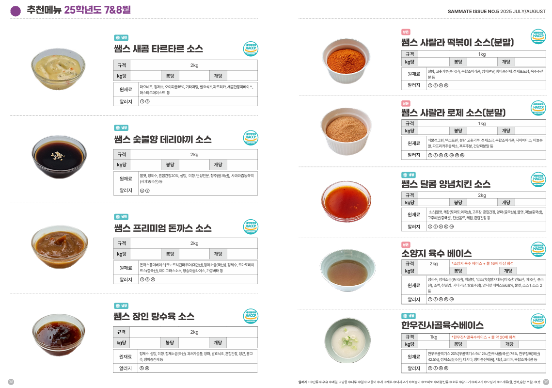 ♥♥한맥푸드♥♥ 쌤메이트 8월 단가표입니다^^
