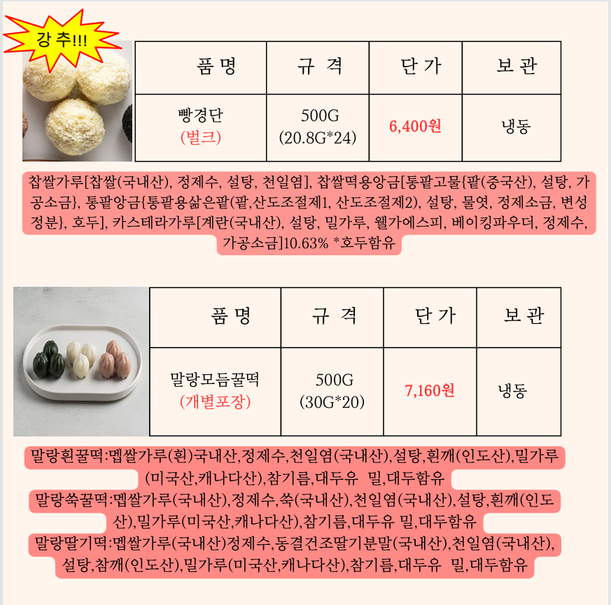 ◐◐(주) 송곡푸드◑◑ 창억떡 8월 단가표 입니다^^