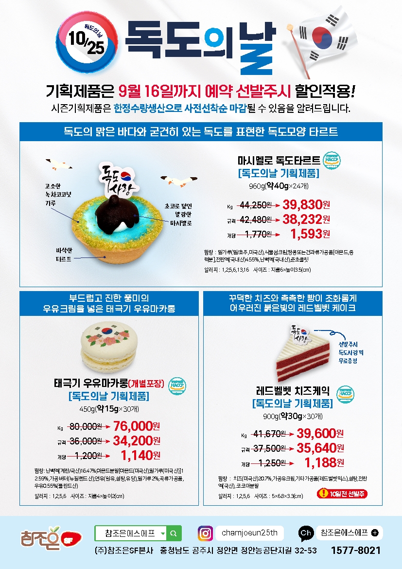 ♠참조은SF♠[2025년 9월16일 선발주 할인 - 독도의날기획(마시멜로독도타르트,택그기우유마카롱,레드벨벳치즈케익익)]