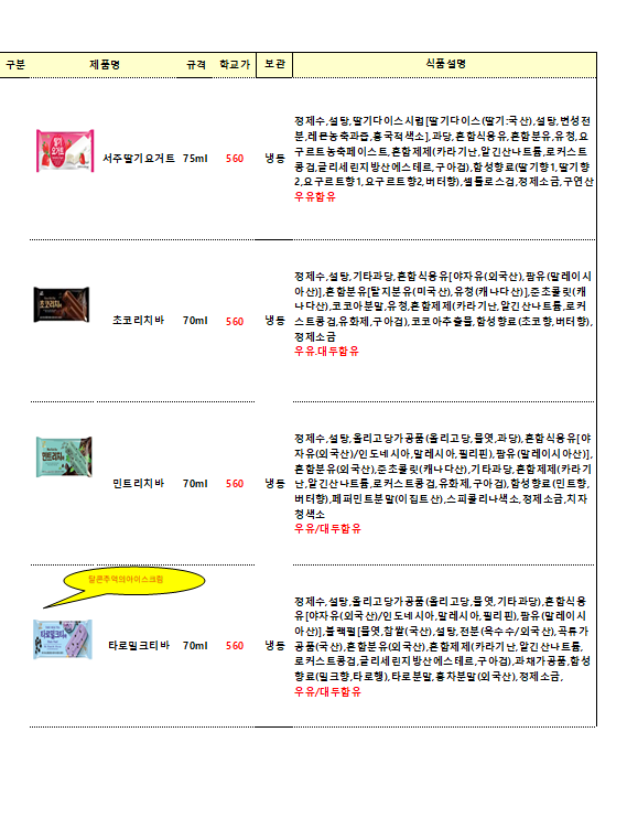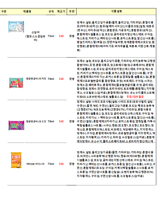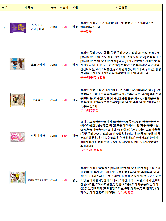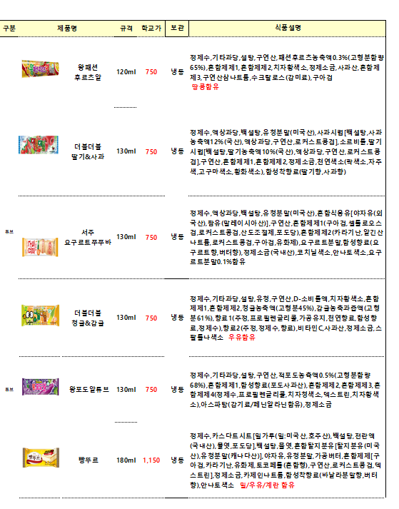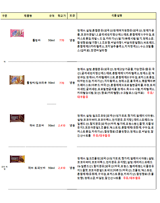 단가표에없는 빙그레,롯데,해태 종류도가능합니다