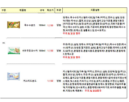 콘종류는---> 학교단가 1,300원입니다