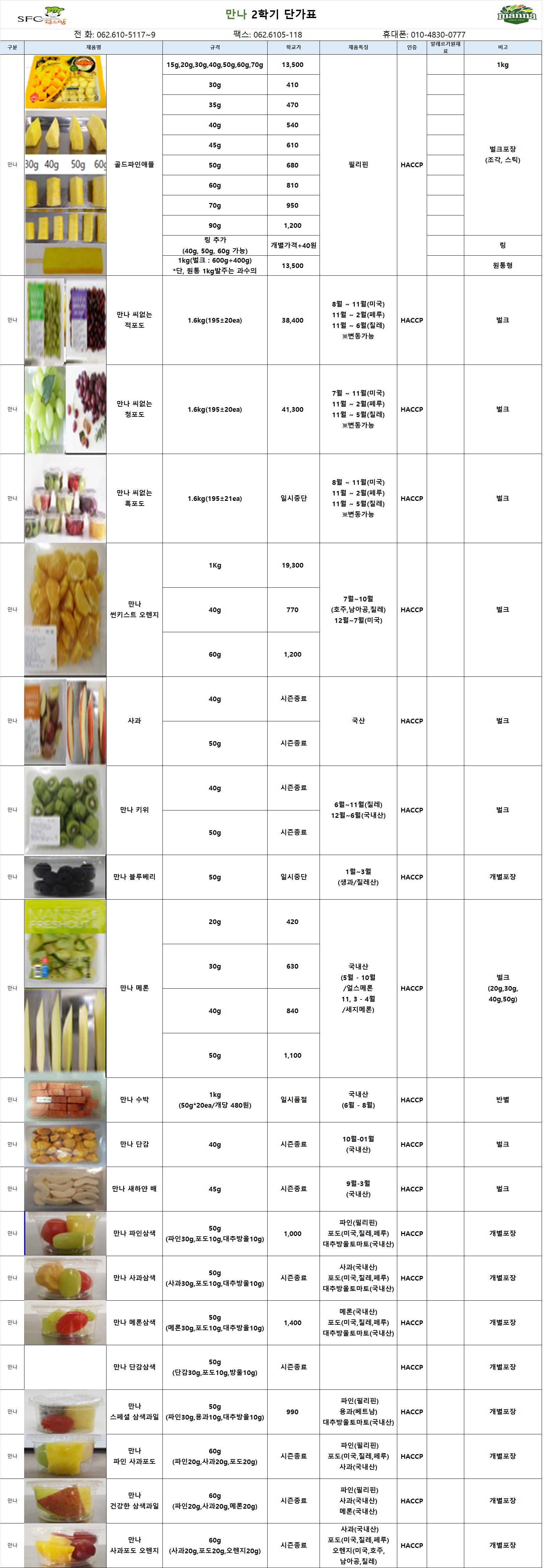 ***SFC푸드맘 만나 생과일 9월 단가표입니다***