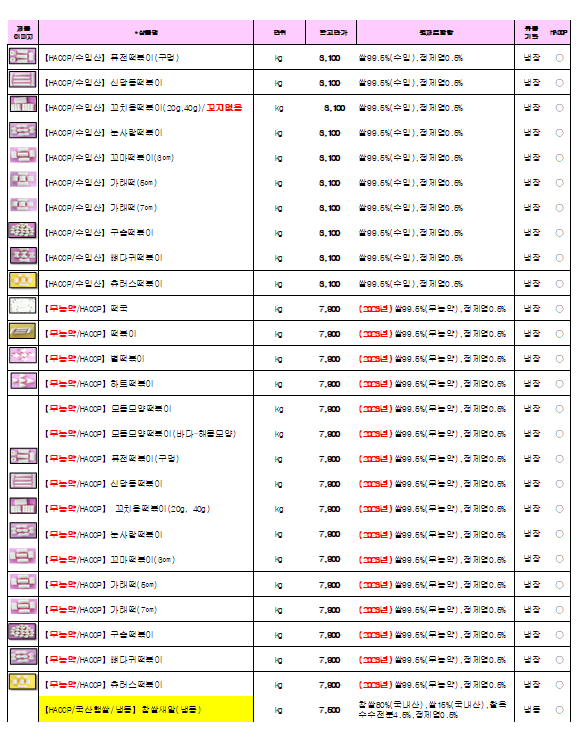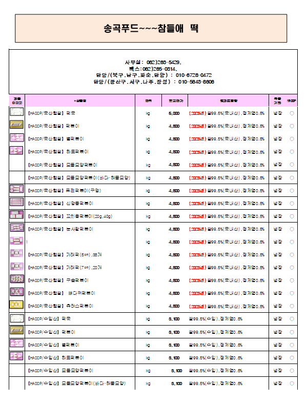●●●송곡푸드 - 참들애떡 10월 단가표 ●●●