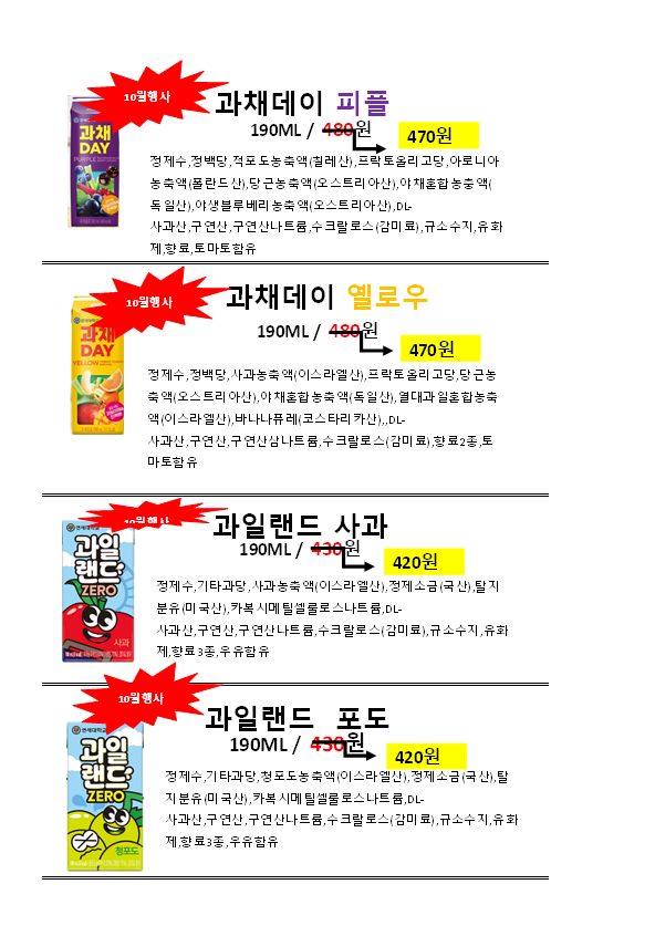 ◈◈한맥푸드◈◈ 연세우유 10월 단가표 ◈◈◈