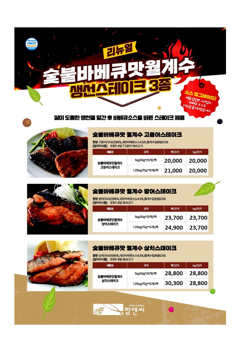참조은~♠팜앤씨♠[2026년 1~2월 단가표](블랙타이거치즈새우,오징어로볼카츠,자숙전북다아스,붉은대게살(국내산),숯불향이븐연어스테이크,찐두부쏙새우,통살가리비볼(세트),새우짜조롤 피자토핑연어함박,명태까스,광어까스,아귀튀김,깐풍꼬다리,초당옥수수완자전,쭈구미탕탕이전,연어스테이크,한치깔라마리,감자말이새우,치즈볼,대하새우살,버터플라이적새우,블랙타이거새우, 광어살강정