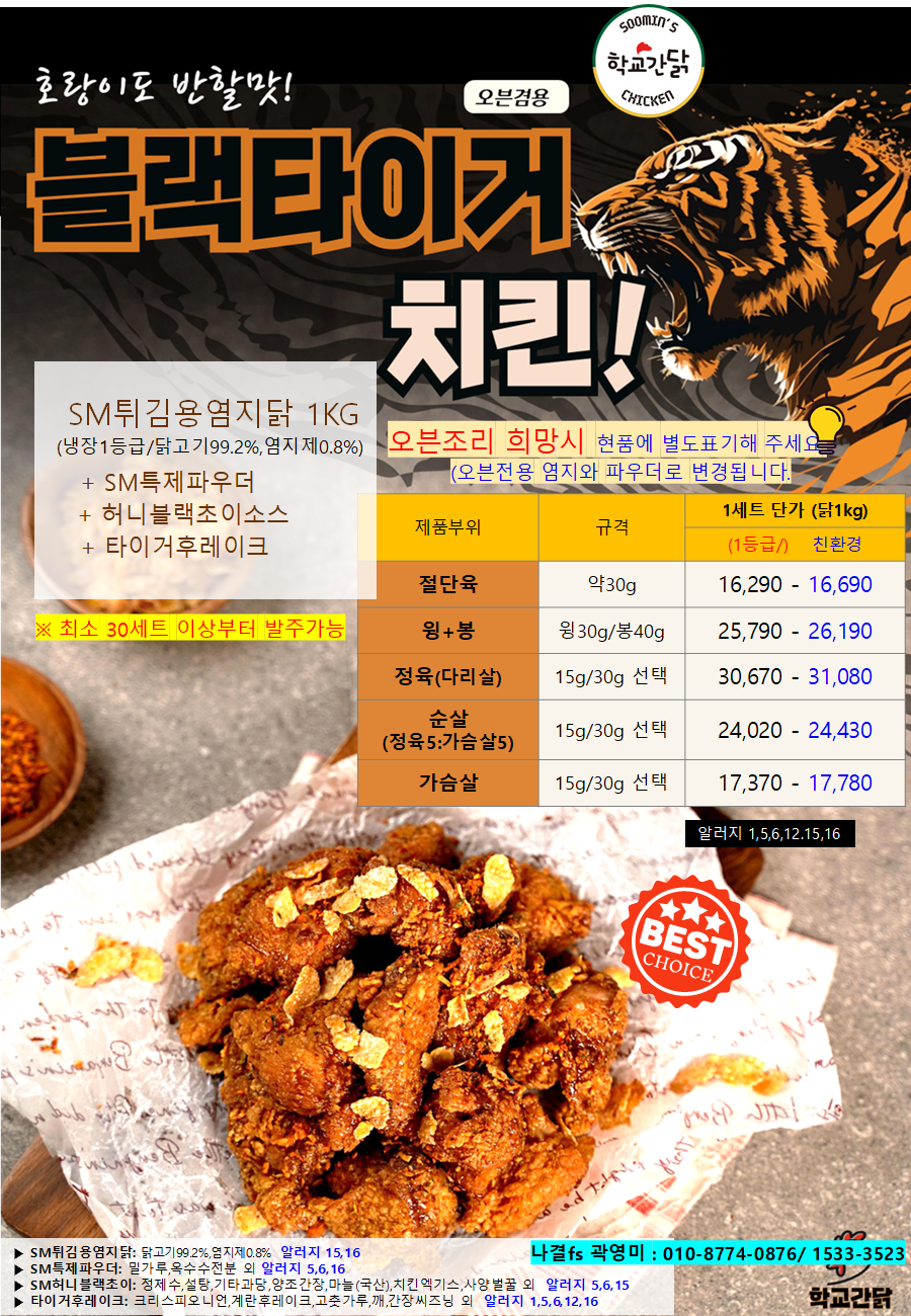나결fs 학교간닭4월단가**블랙타이거치킨,더블랙치킨,바삭크크,지파이,치킨스테이크,탄두리치킨,치밥