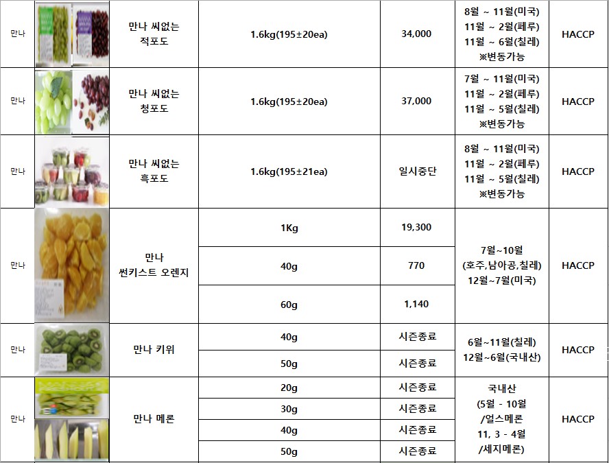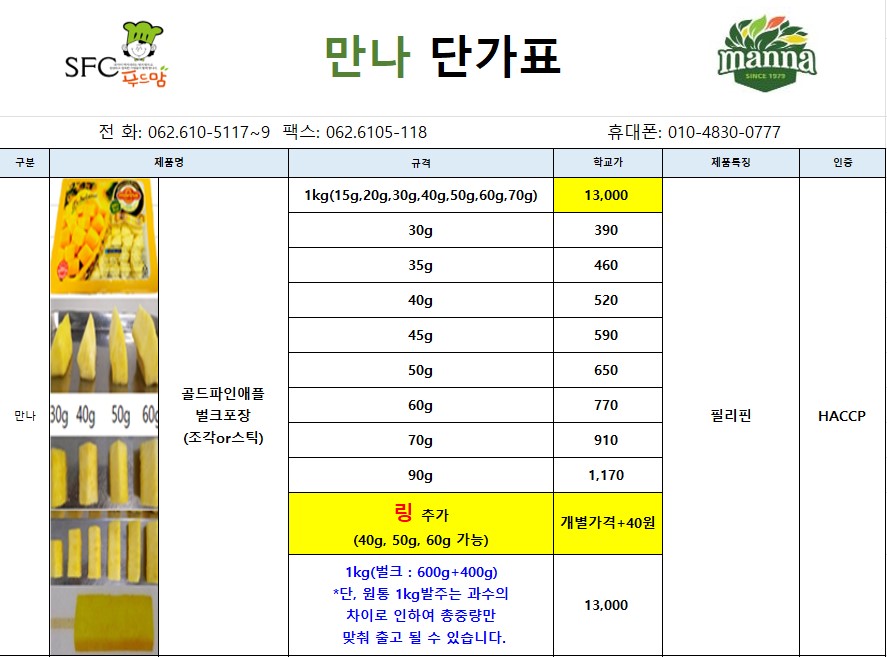 *** SFC푸드맘 만나 생과일 4월 단가표입니다(변동없슴)***