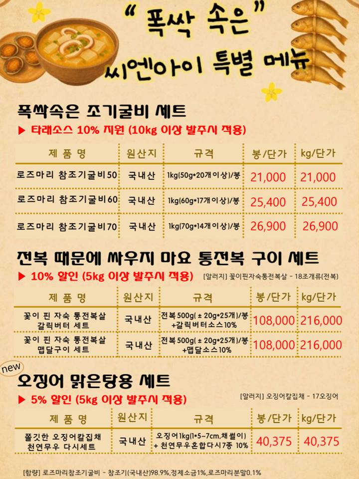 "씨엔아이" 단가표 올려 드립니다.^^