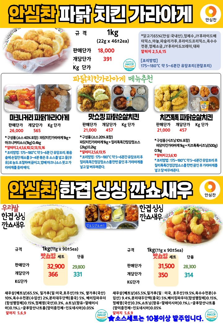 ✿✿[동원에프엔에프]안심찬 9월 단가표✿✿