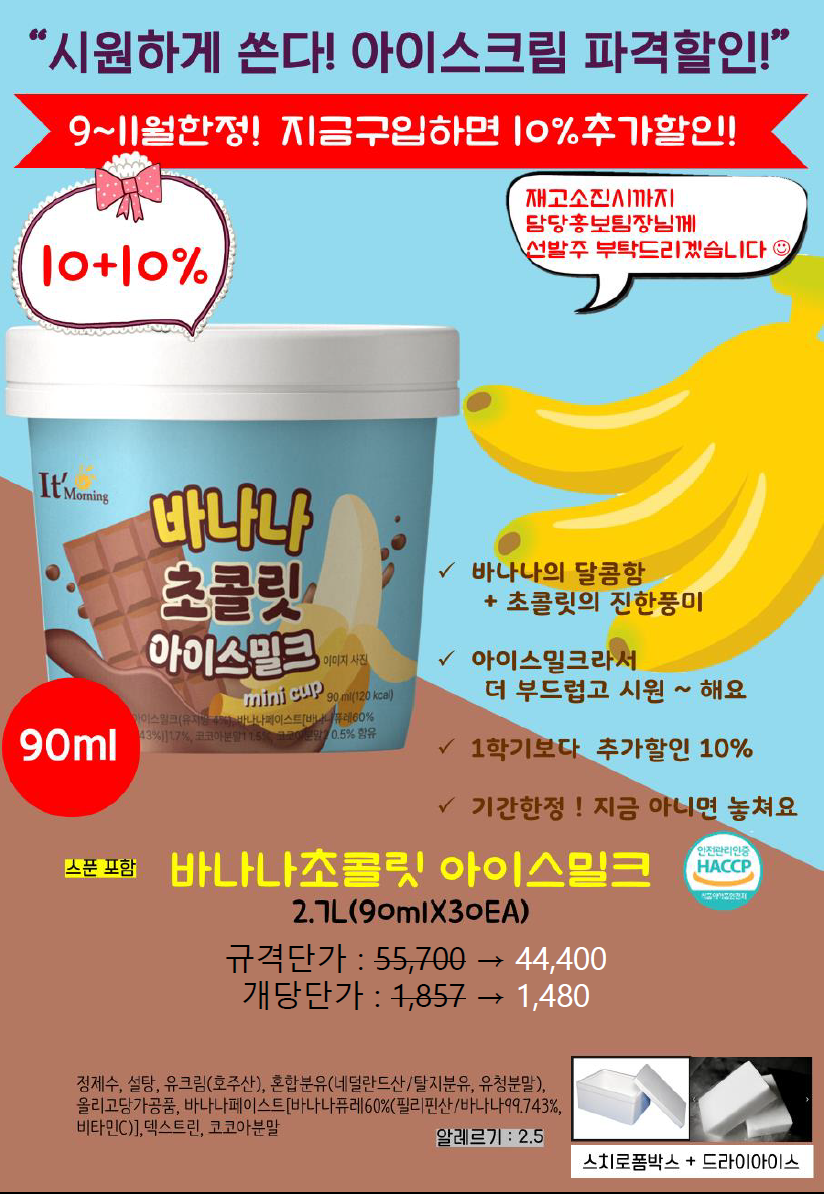 ◈≪≪도래샘푸드≫≫❤️▶[천년풍미/잇모닝]◀❤️9월 전체단가표(바나나초콜릿아이스밀크,딸기바나나딜라이트케이크,광어까스,순살달고기텐더,빠사삭안심텐더,아이스슈(멜론,산딸기,쿠앤크블랙비스킷)
