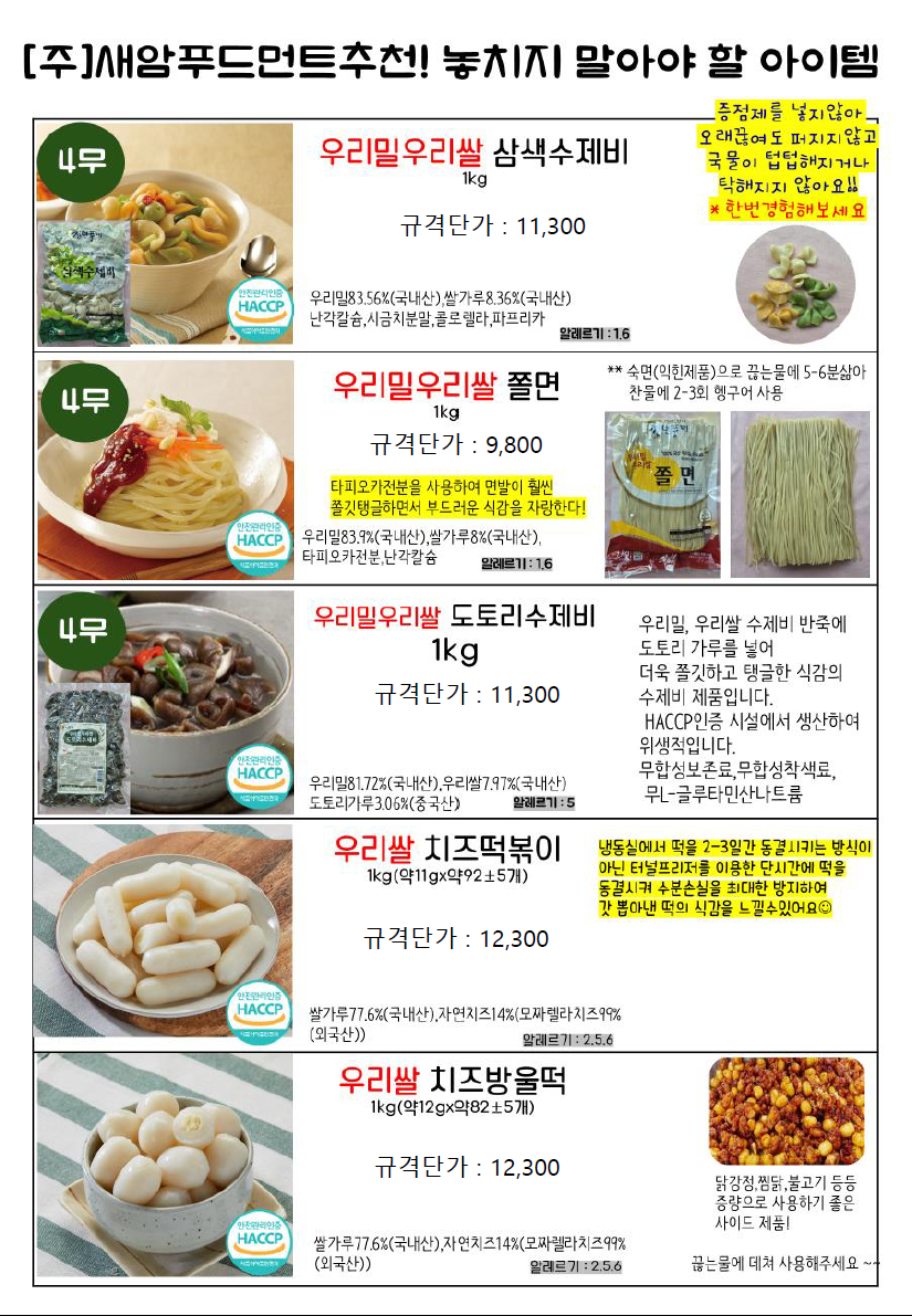 제품문의: 도래샘푸드 576-8007 / 정현화팀장 010-5133-0798
