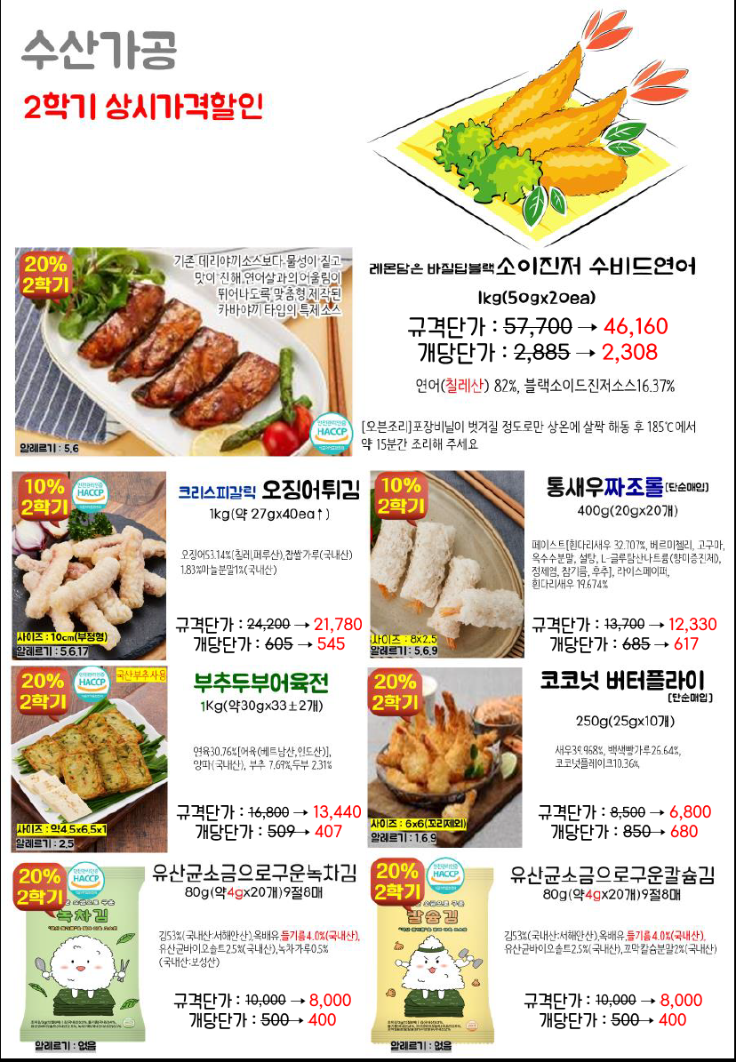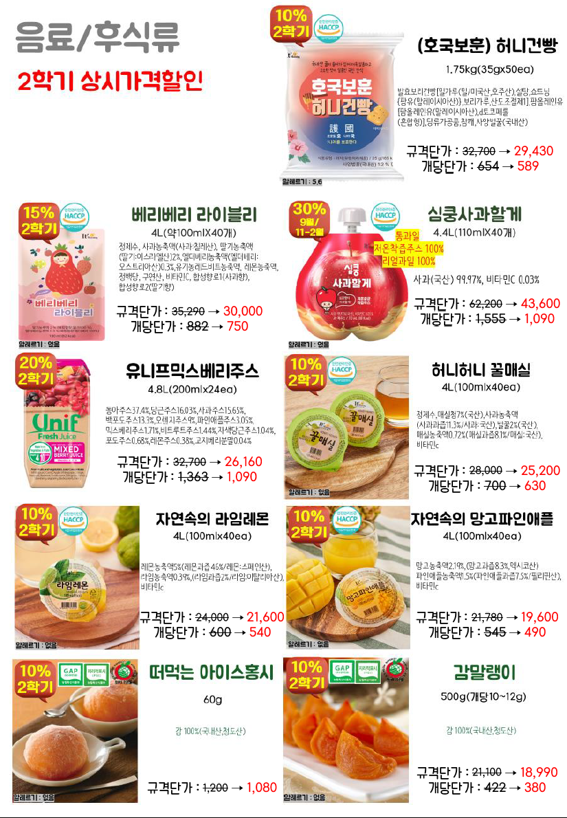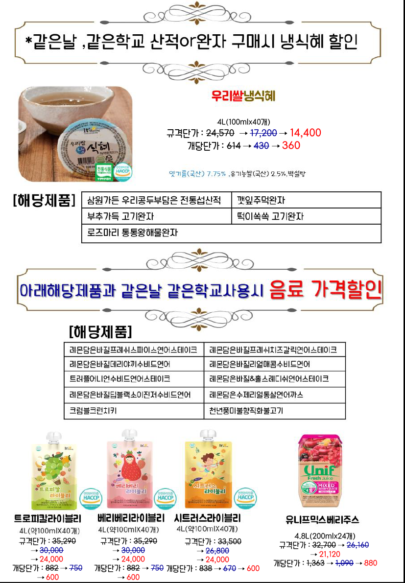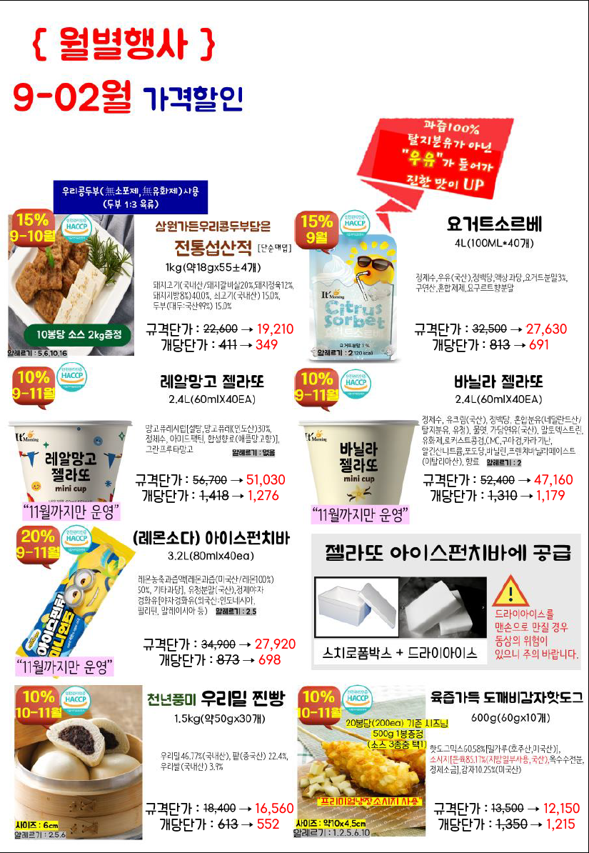 신제품 및 할인행사 많이하오니 단가표 참고하시기 바랍니다..^^