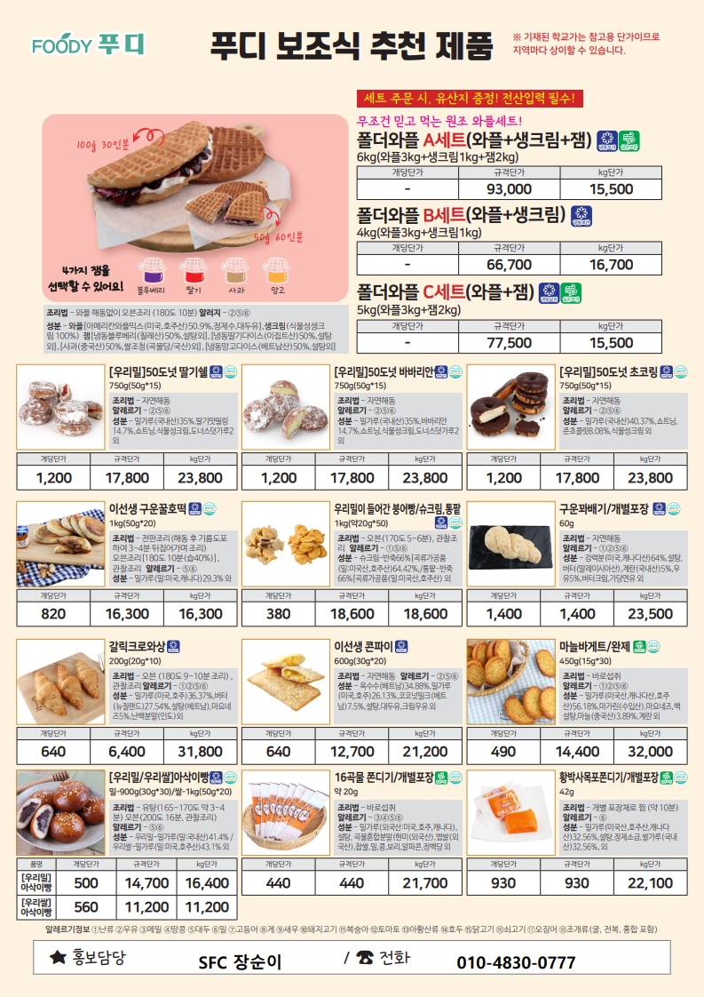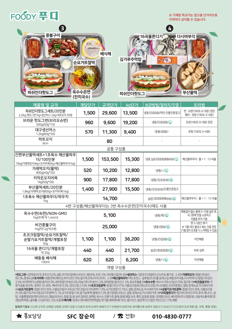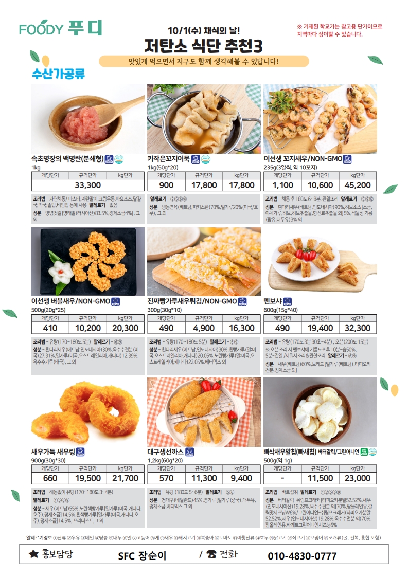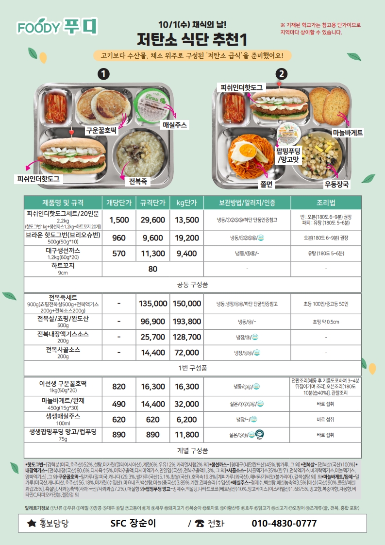 ***SFC푸드맘 푸디 10월 단가표입니다.***