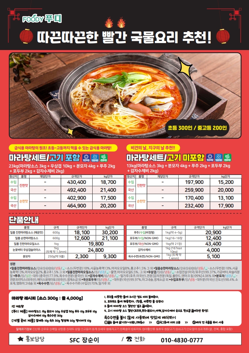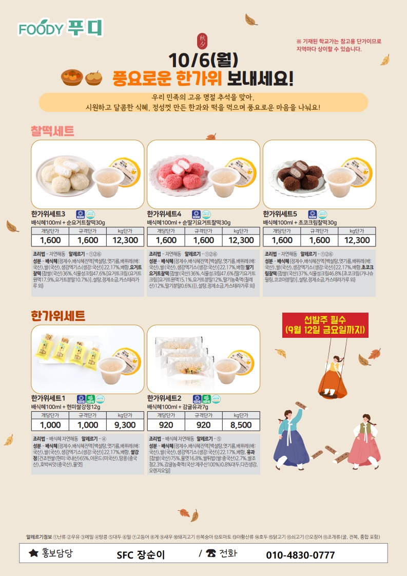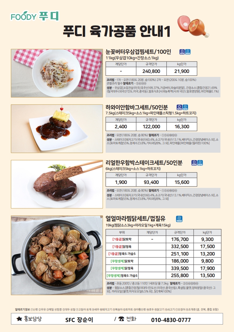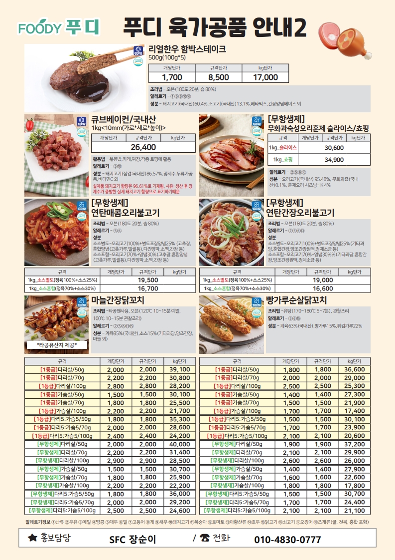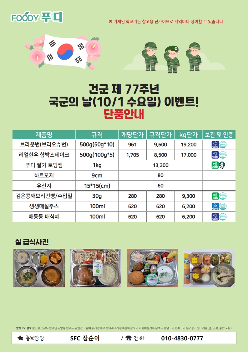 ***SFC푸드맘 푸디 10월 단가표입니다.***