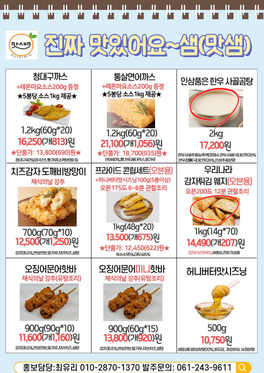 [동원에프엔에프] 맘스쿡 10월 단가표