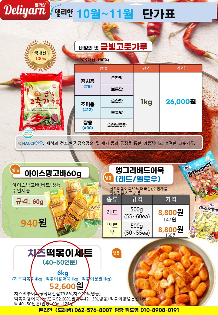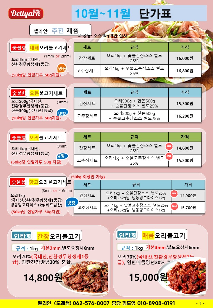- 10월~11월델리얀 단가표.xlsx [size : 15.7 MB] [다운로드 : 14]