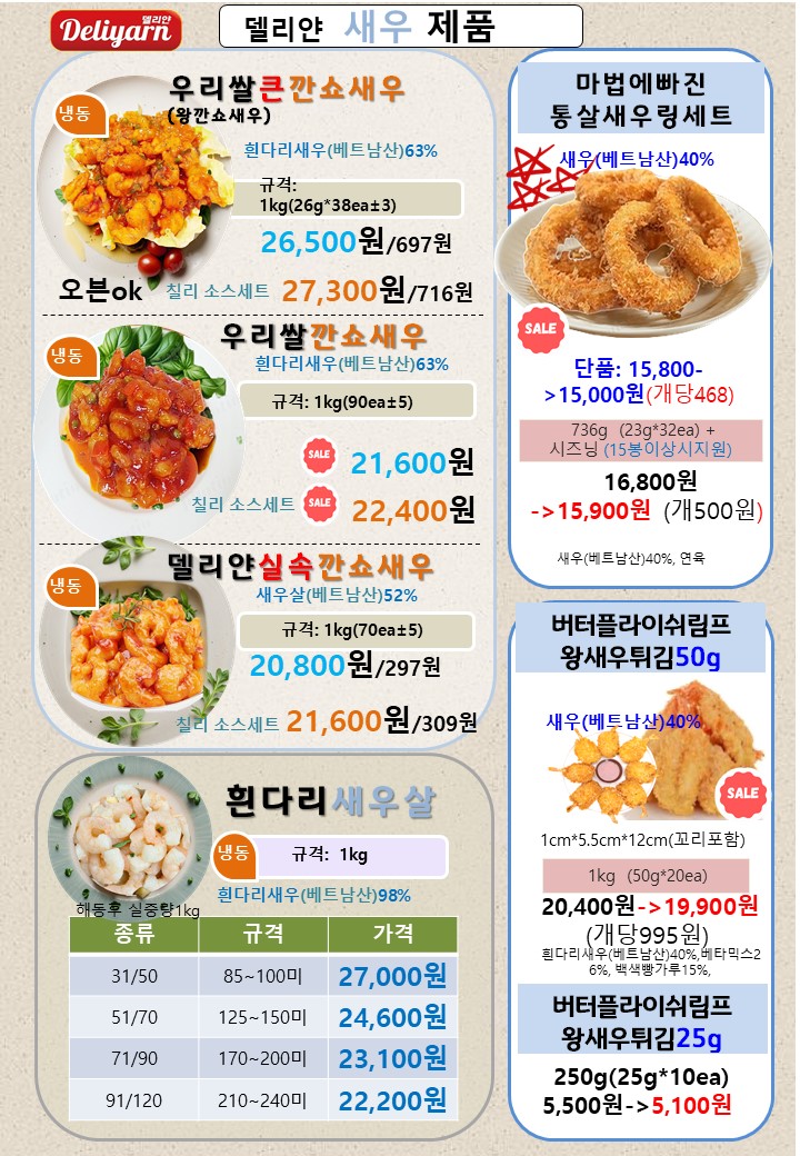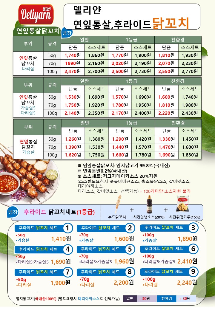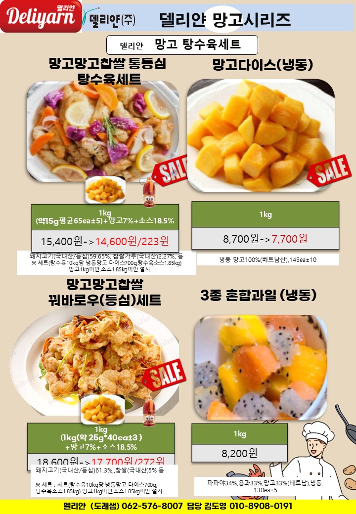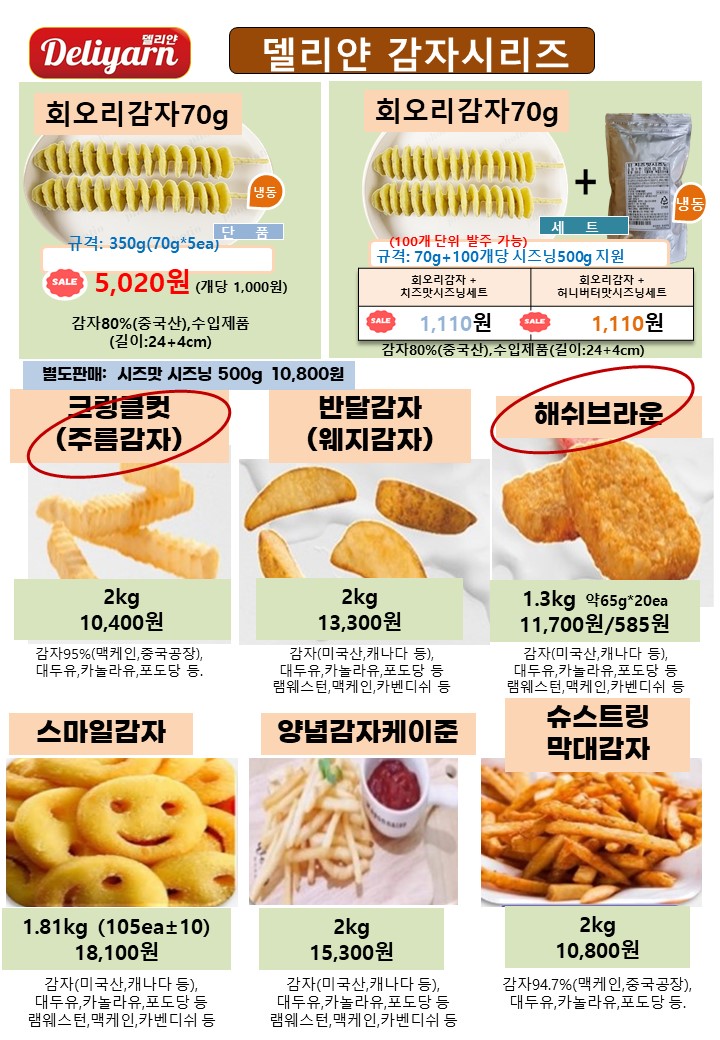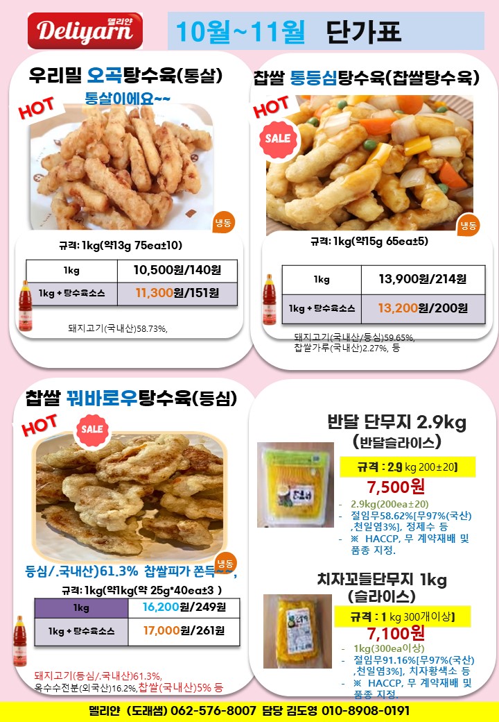 ☆★도래샘=>델리얀 10월~11월☆★ 유린기, 치킨텐더,탕수육,치킨카츠,망고3종,새우튀김,깐쇼새우,츄러스,오징어튀김,전병…