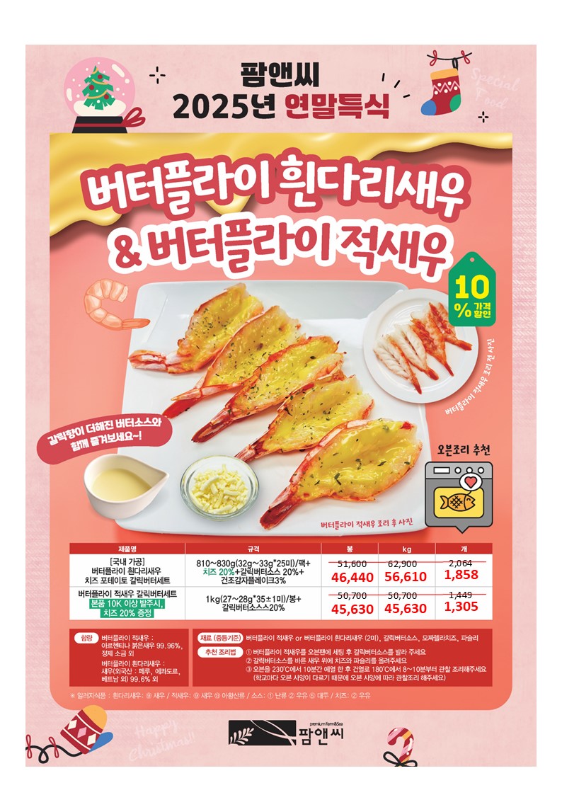 참조은~♠팜앤씨♠[2025년 11월 단가표](블랙타이거치즈새우,오징어로볼카츠,자숙전북다아스,붉은대게살(국내산),숯불향이븐연어스테이크,찐두부쏙새우,통살가리비볼(세트),새우짜조롤 피자토핑연어함박,명태까스,광어까스,아귀튀김,깐풍꼬다리,초당옥수수완자전,쭈구미탕탕이전,연어스테이크,한치깔라마리,감자말이새우,치즈볼,대하새우살,버터플라이적새우,블랙타이거새우, 광어살강정세