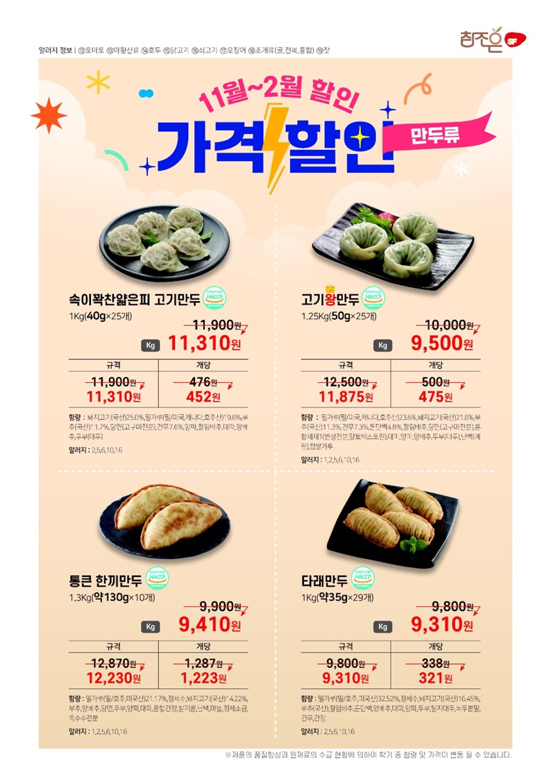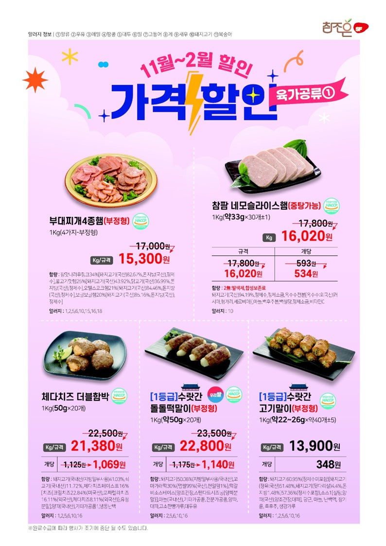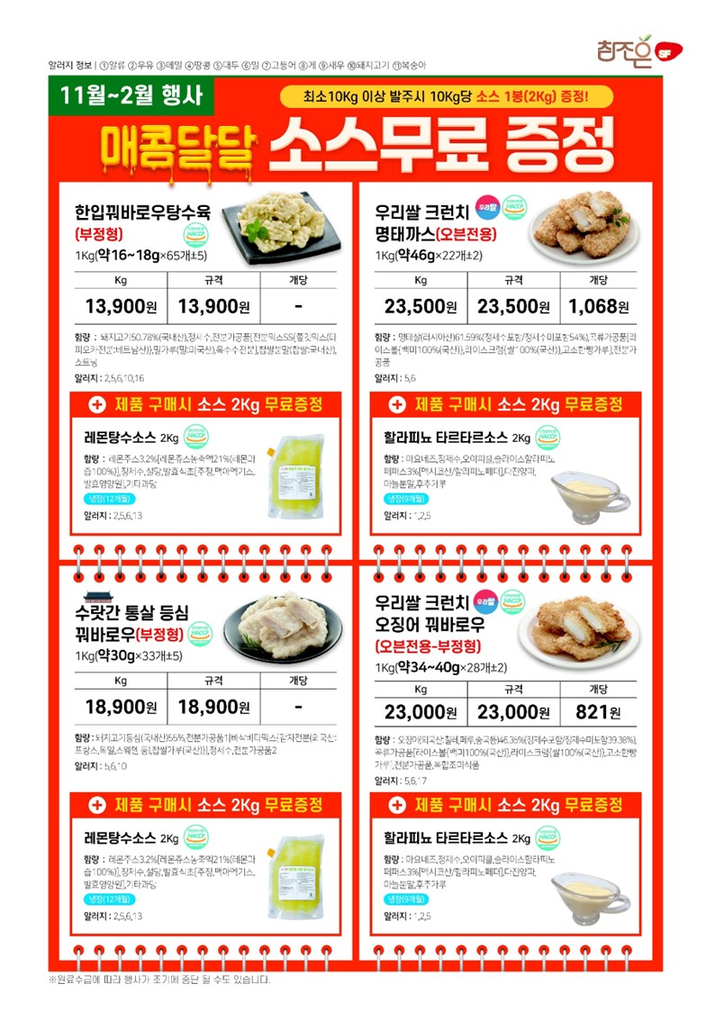 ♠참조은♠[2025년 11월 단가표](수능엔초코요거꿀떡,프리미엄자숙꼬마전복,세줄옹떡이,우리쌀꼬마김밥,크리미머쉬룸포타쥬,통큰고구마튀김,감탄케익,무안사랑돈안심카츠,우리쌀크런치 오징어 꿔바로우,우리쌀크런치명태까스,짬뽕군만두.오리지널큐스테이크,la갈비맛큐브스테이크,통치즈가스, 통큰더블함박,수랏간돌돌떡말이,수랏간돼지갈비후라이드,바삭베이크윙봉콤비,수랏간간장돼지불고기,