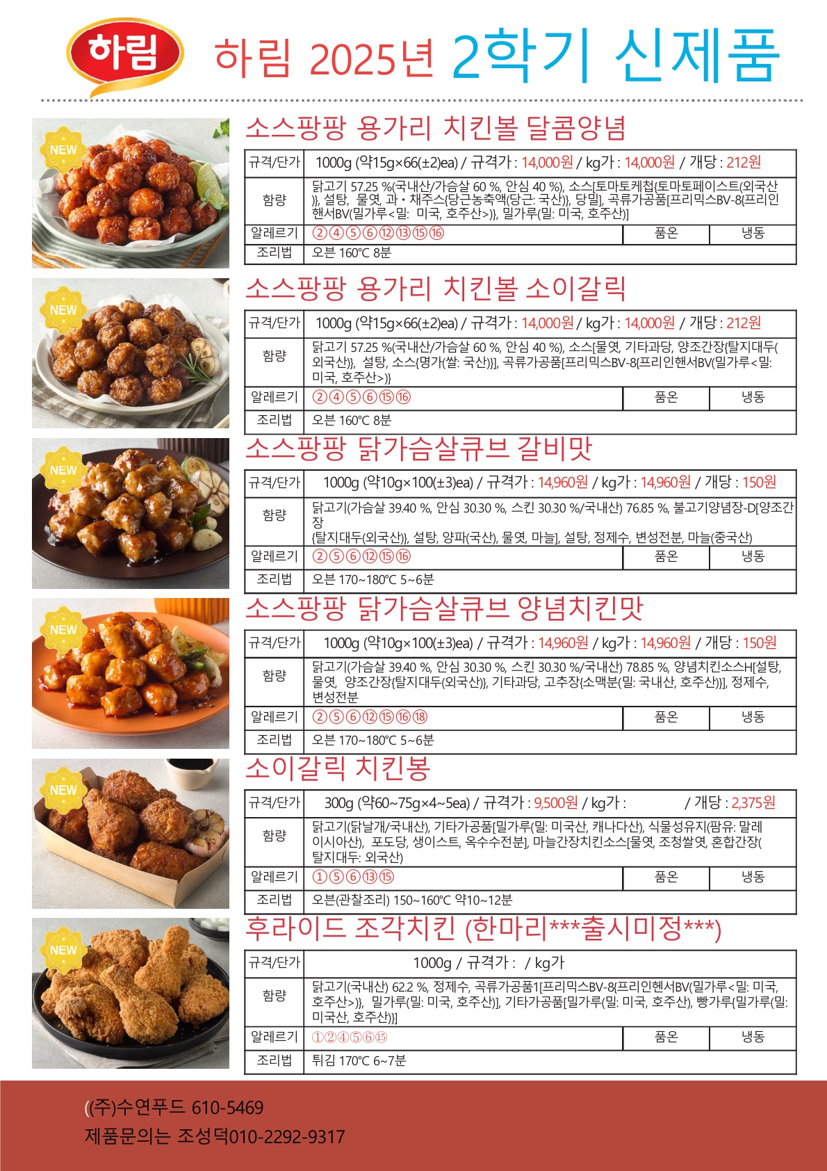 ▶수연푸드▶하림육가공25년11월행사단가입니다★샘플문의는 언제든★전품목 20kg이상소스증정(구워먹는 치즈치킨덤플링까스,시카고피…