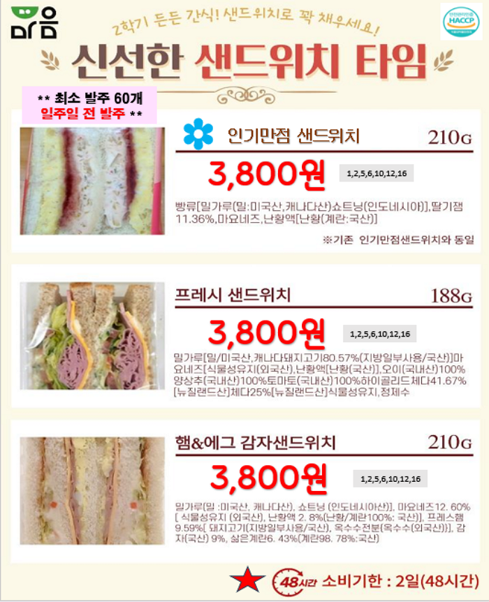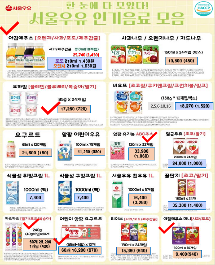 ** 푸드마일 마음 11~12월 단가표 입니다 ** 연세우유딸기크림떡, 창억떡, 서울우유, 남양유업, 빙그레, 참나무캠핑꼬지 , 떡갈비, 신의주순대국밥세트, 크로플, 스모어쿠키,사과당근주스, 배주스, 앙버터호두과자, 호떡, 붕어빵, 찐빵, 폭립, 차슈,,,,