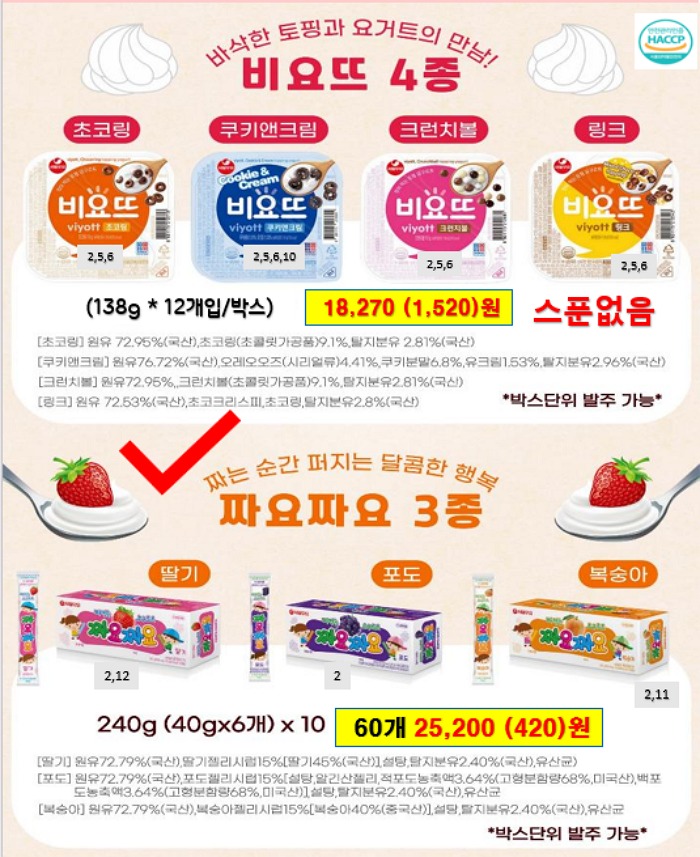 연세우유딸기크림떡, 창억떡, 서울우유, 남양유업, 빙그레, 참나무캠핑꼬지 ,