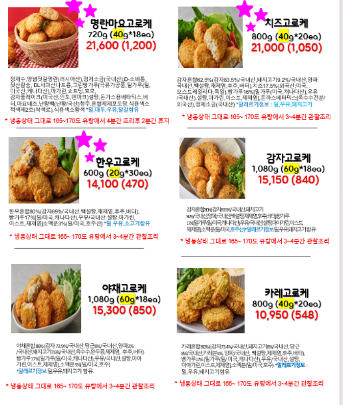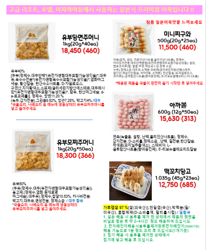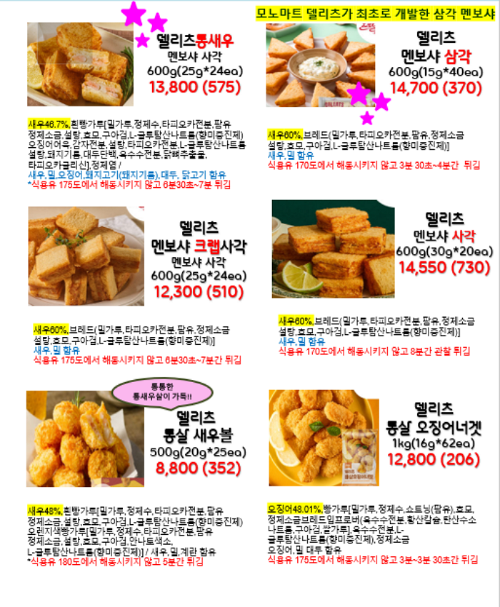 모노마트는 고로케류, 튀김류, 어묵등