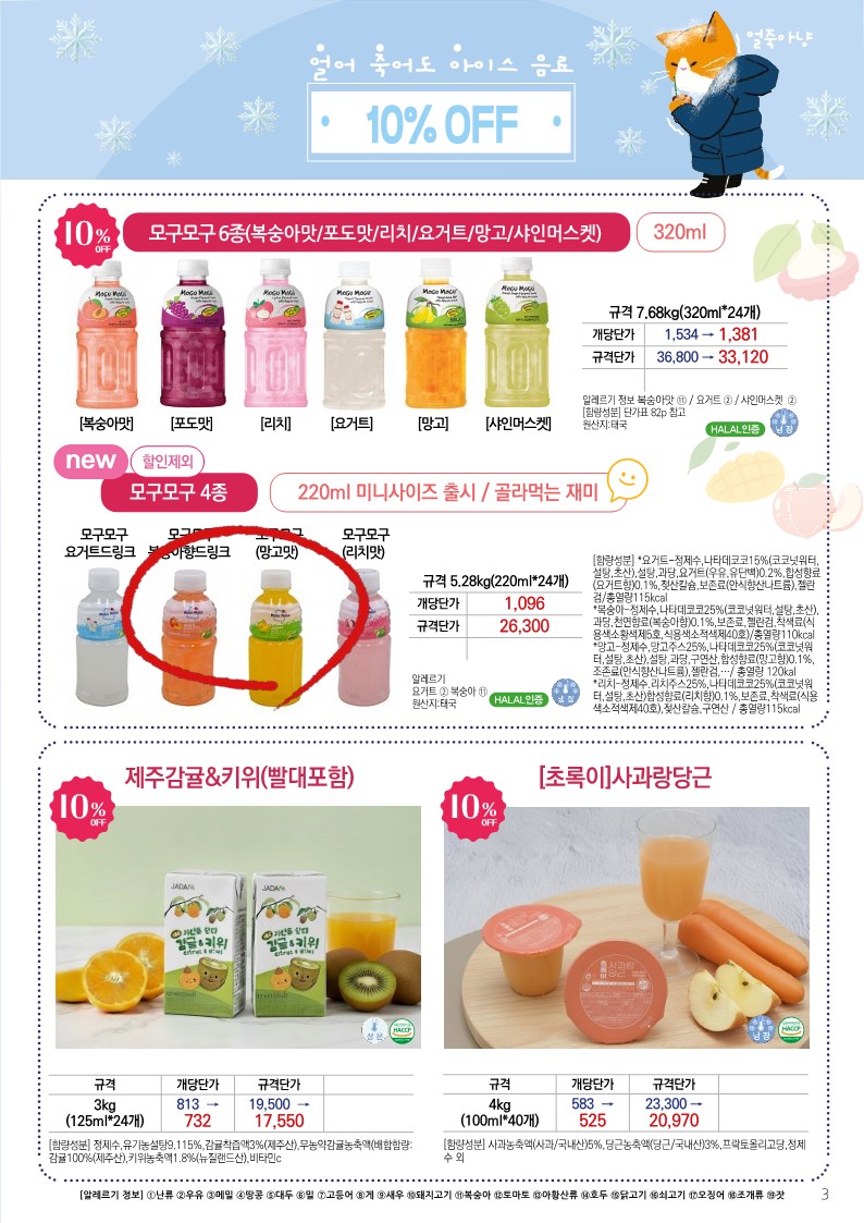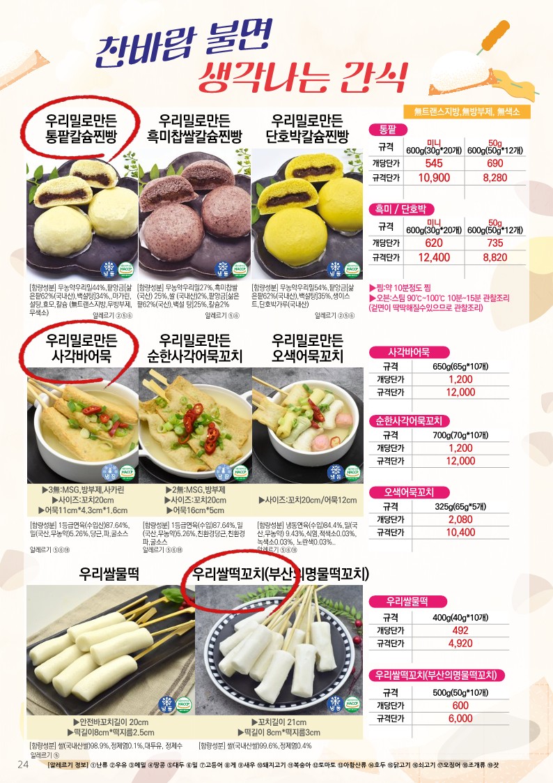 ✿✿[동원에프엔에프]초록푸드&급식대장 11월 단가표✿✿