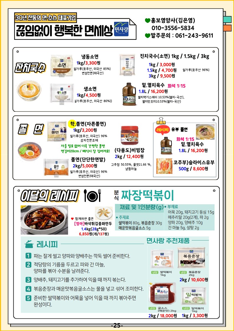 면사랑 단가표와 레시피북을 올려드리오니 맛있는 식단에 참고부탁드립니다!!