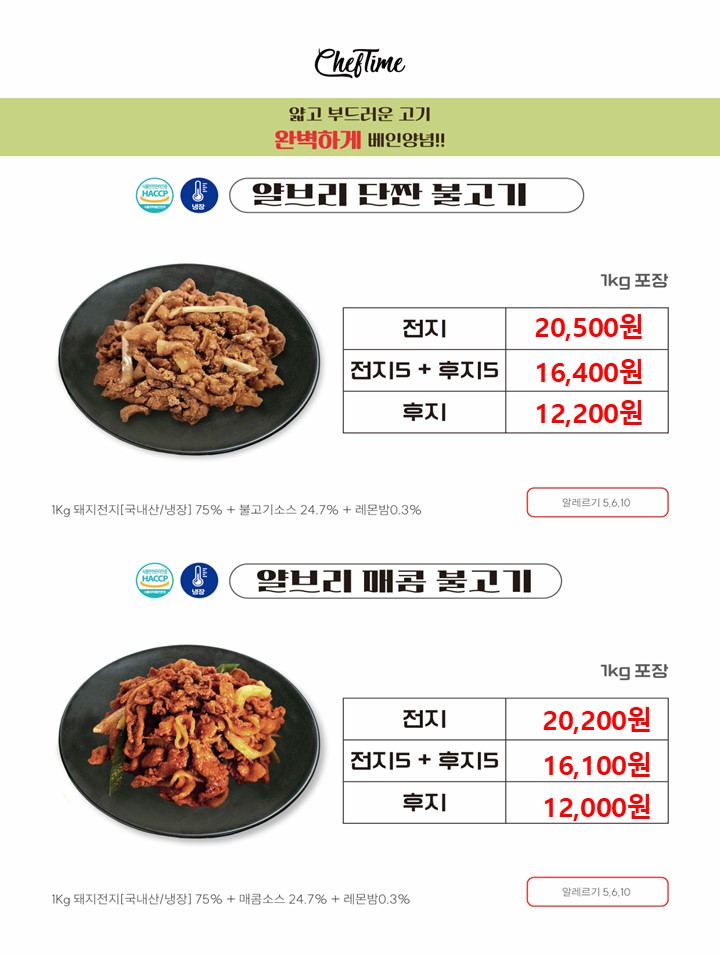 ★★★★ 엘푸드 11월 쉐프타임 학교 단가표 ★★★★