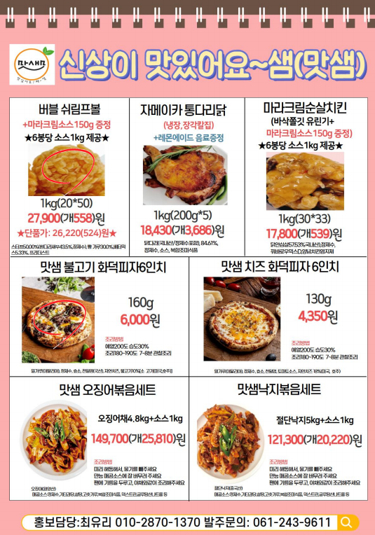 안녕하세요 맛샘 홍보사 최유리 입니다.