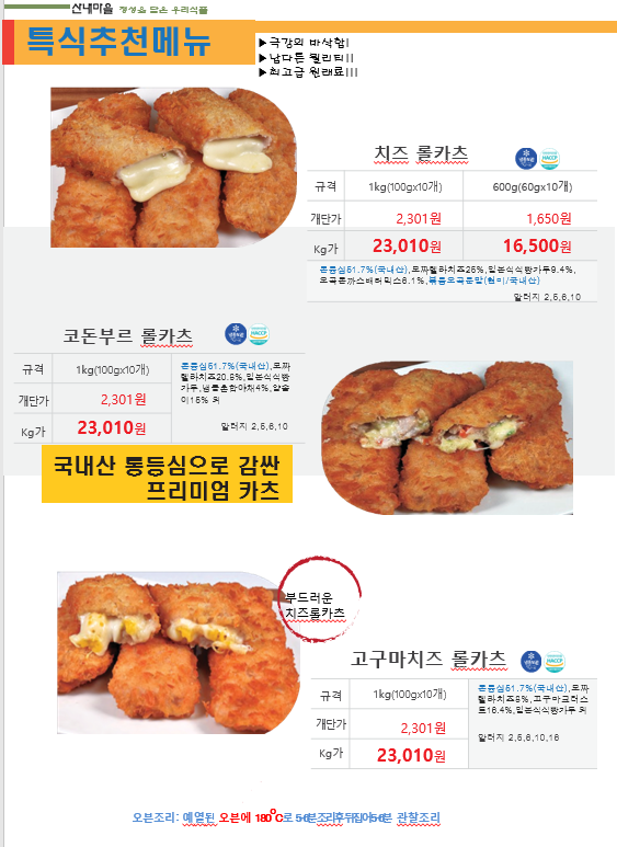 ♡송곡푸드♡「산내마을 - 돈까스,유린기,꿔바로우,핫도그.닭꼬치,국밥,디저트」12월, 1월 단가표입니다