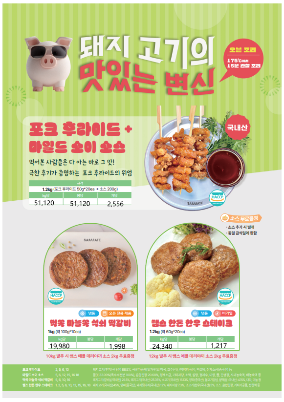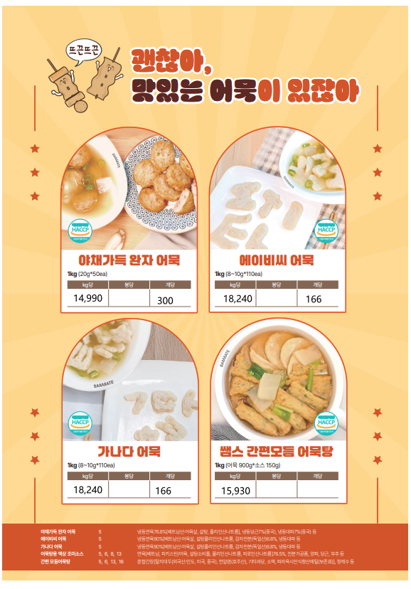 ♡한맥푸드♡「쌤메이트 - 슈니첼,떡볶이,튀김,어묵,핫바,김말이.햄버거,쿠키류,마카롱,디저트.」12월, 1월 단가표입니다